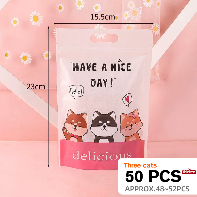 50pcs Cute Cat Bag Plastic Cookie Pastry Loot Bag Party Bag Resealable Stand Up Pouch