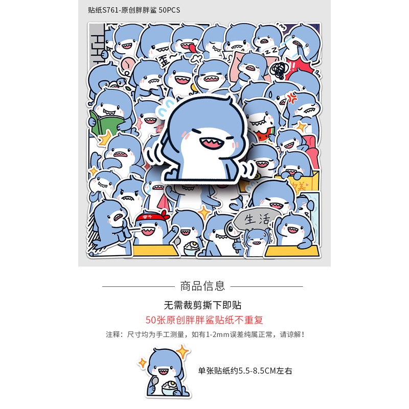 50pcs Cute Shark Stickers Water Bottles Laptop Phone Motorcycle Computer Guitar Skateboard Hydroflasks Sticker Waterproof Aesthetic Trendy Decals