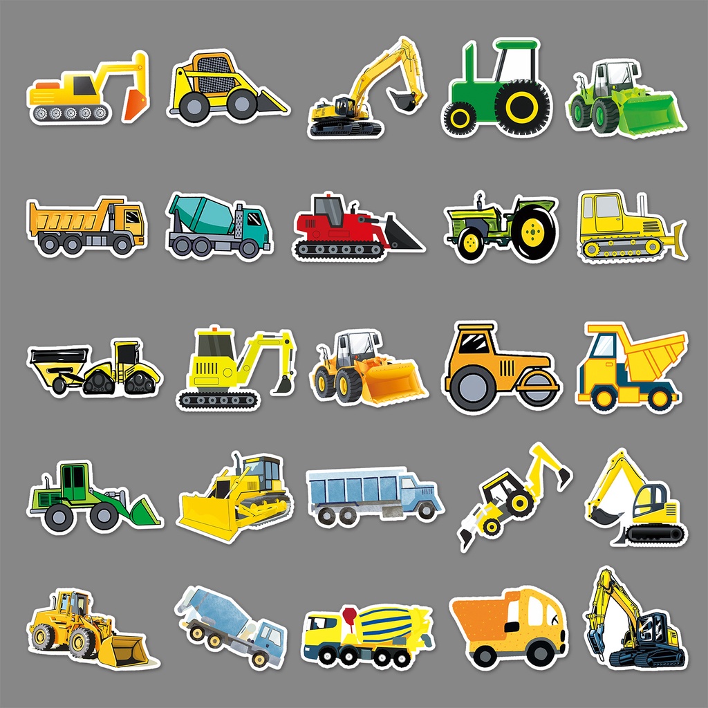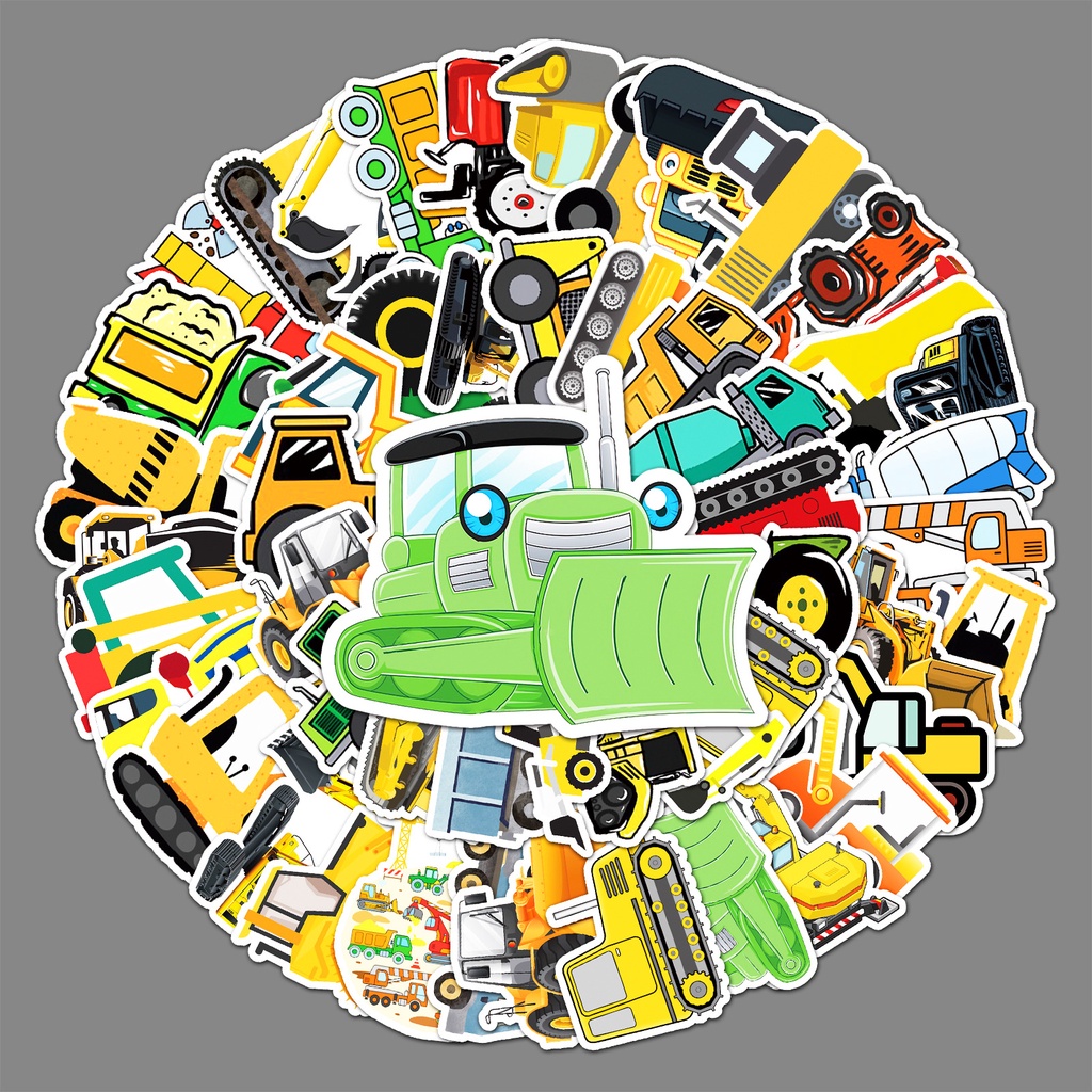 50pcs Cute Stickers Engineering Vehicle DIY Graffiti Stickers Luggage Compartment Laptop Cartoon Hand Account Stickers Children's Decals