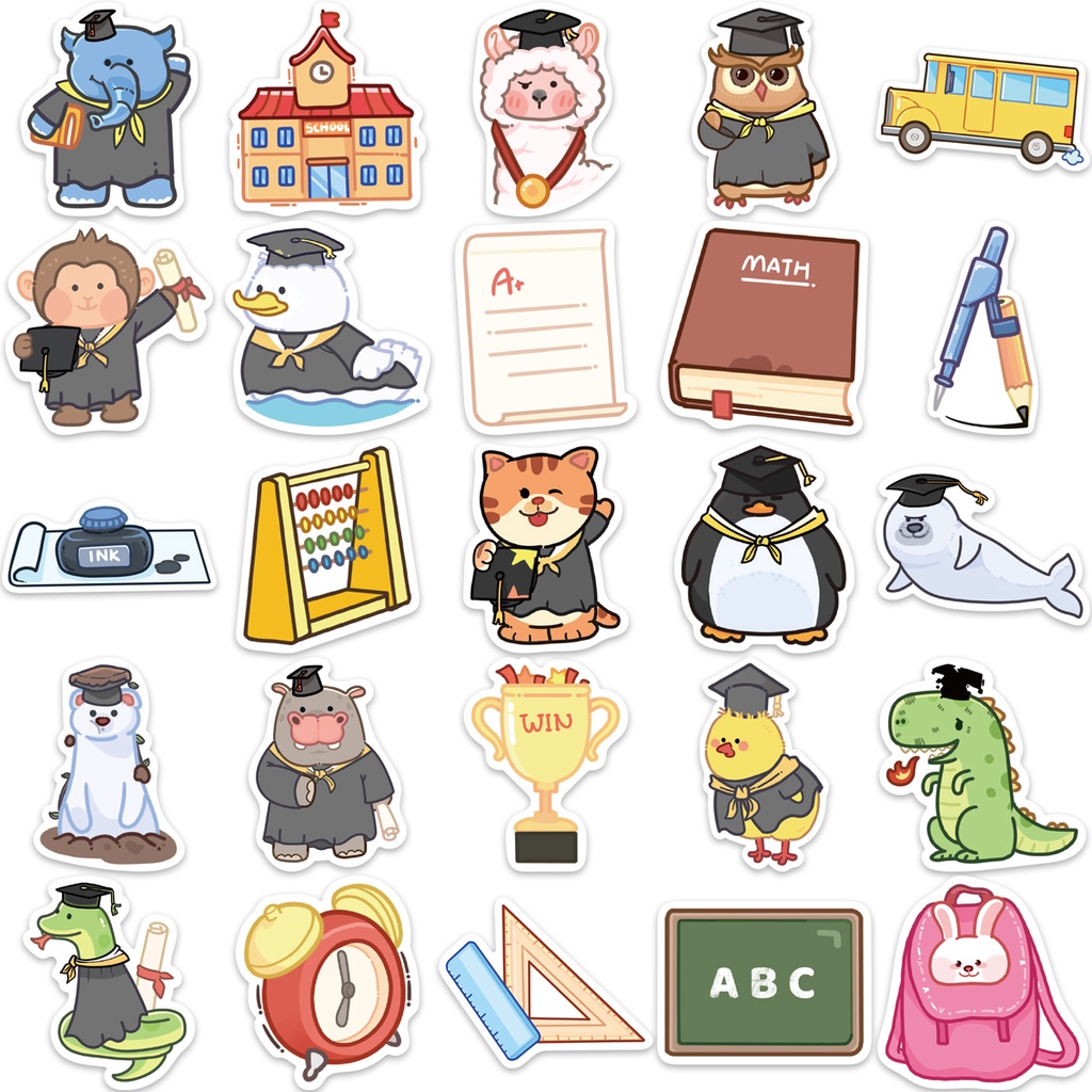 50pcs Graduation Cartoon Animals Stickers Graffiti DIY Water Skateboard Waterproof Luggage Laptop Car PVC Toys Stickers Decal