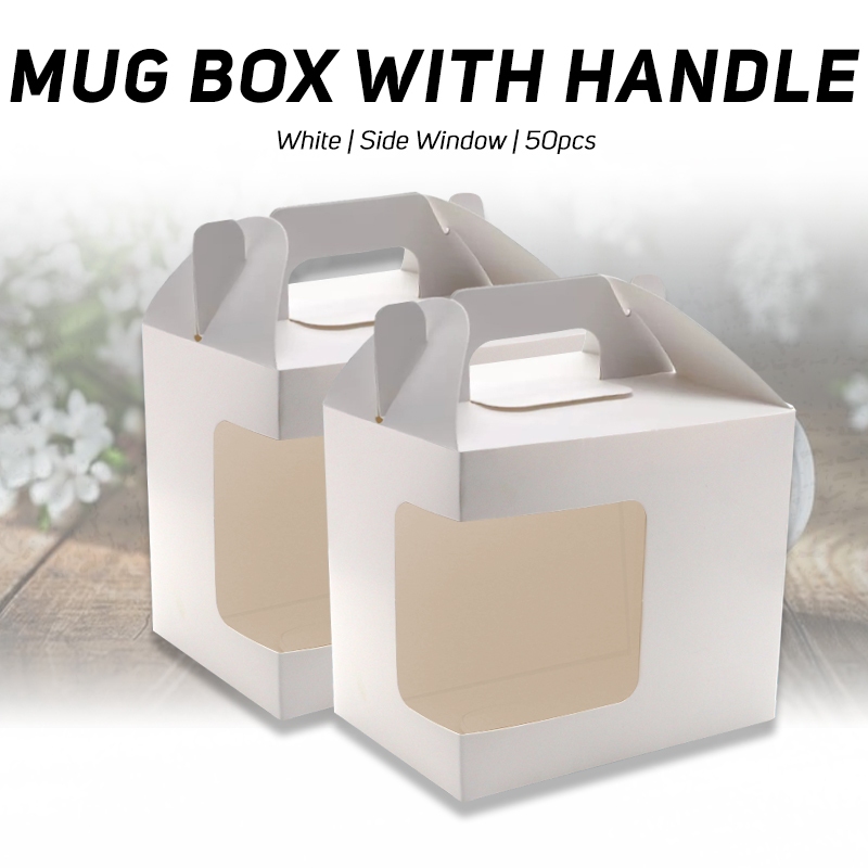 50pcs Mug Box with Handle Side Window White Mug Box
