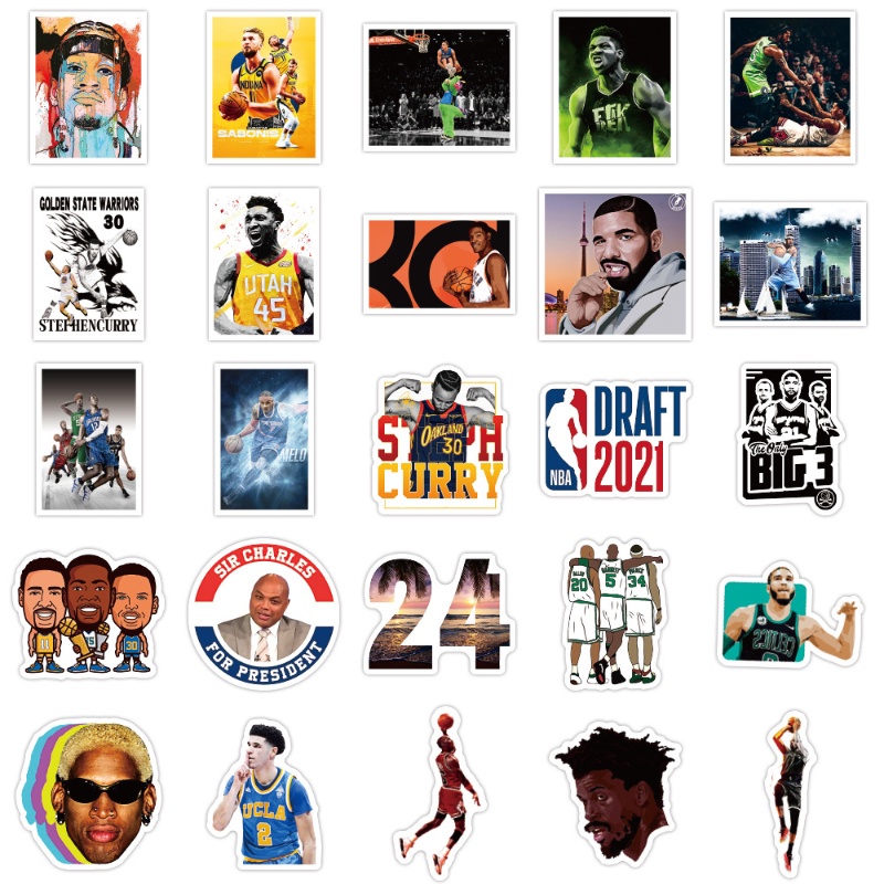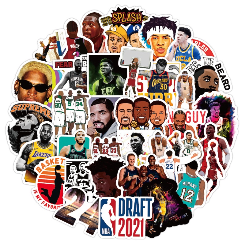 50pcs NBA Stickers for Phone, Waterproof Basketball Star Player Stickers for Water Bottle Tumbler
