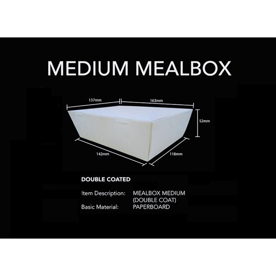 50pcs PAPER MEAL BOX MEDIUM WHITE 750CC double coated, laminated