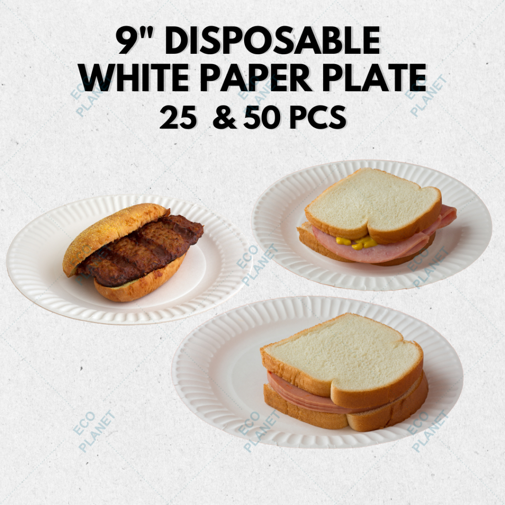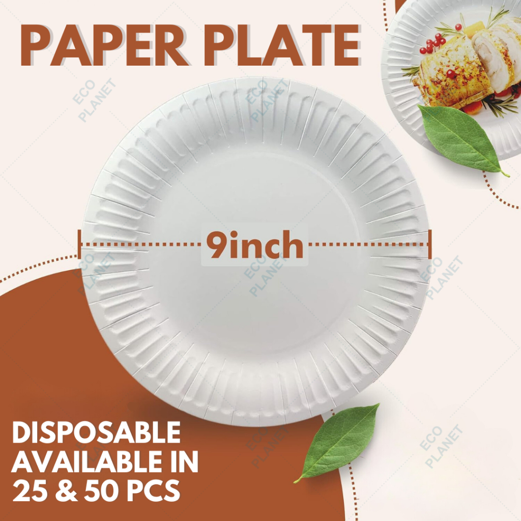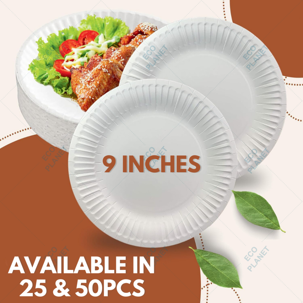 50pcs Paper Plate Party Food Plate 9" Disposable Fully Biodegradable Eco Friendly Ecobiertos