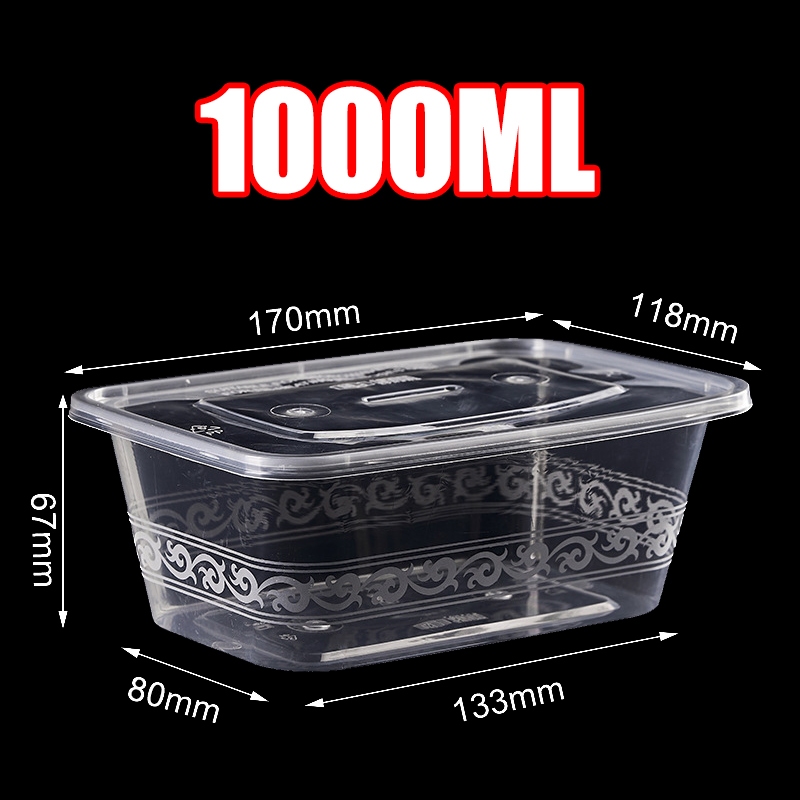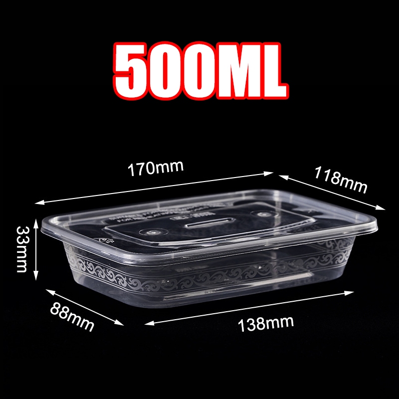 50pcs Rectangle Microwavable Food Container Disposable Clear Plastic Tub RE500 RE650 RE750 RE1000