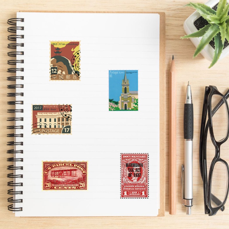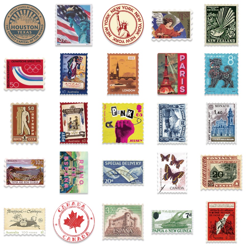 50pcs Retro World Stamp Stickers Travel Sticker for Notebook Scrapbook Postcard Gift