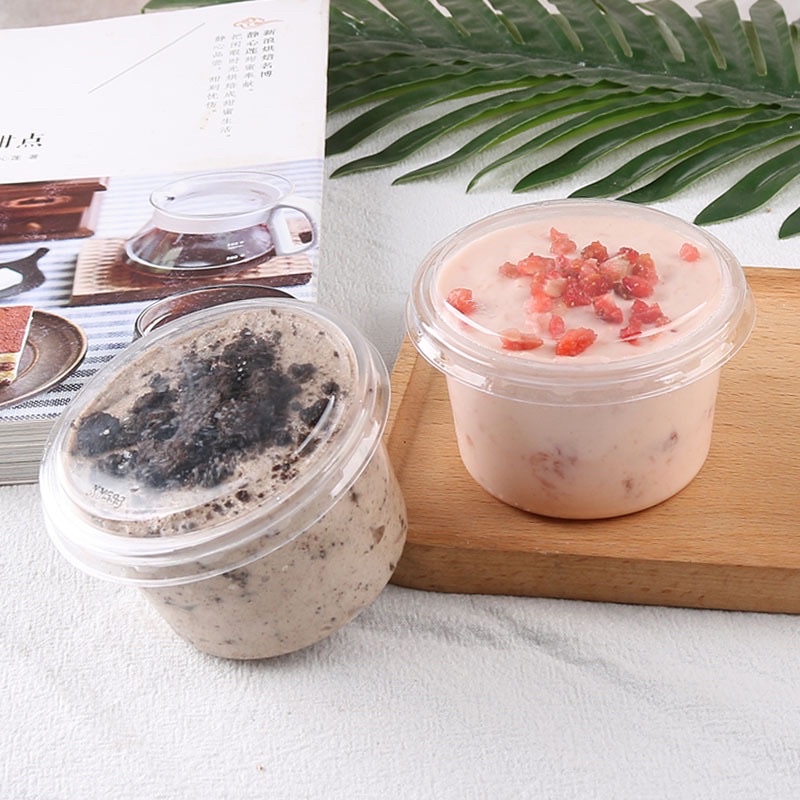 50pcs Round Clear Dessert Cup Plastic Container w/ Lid Mousse Mini Cake Ice Cream Disposable Pudding