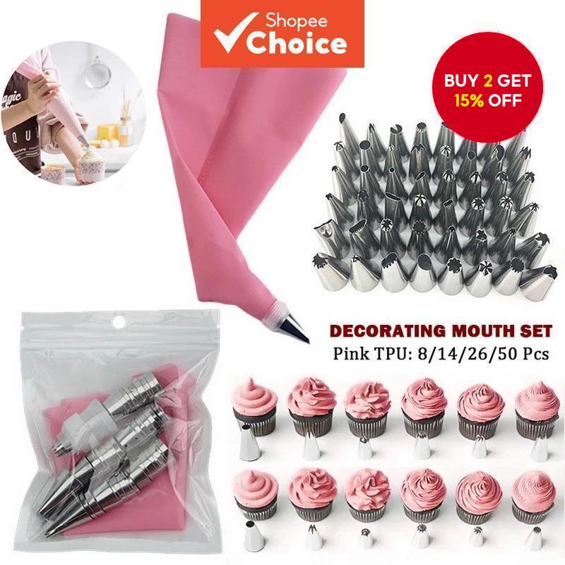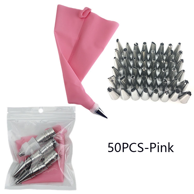 50pcs/Set Confectionery Bag With Nozzles Icing Piping Tip Stainless Steel Cake Decorating Tool Pastry Cream Spout