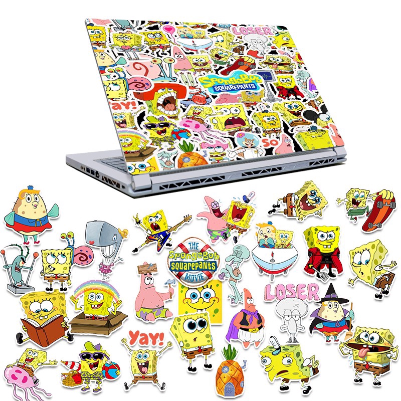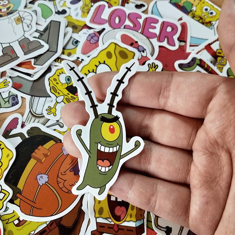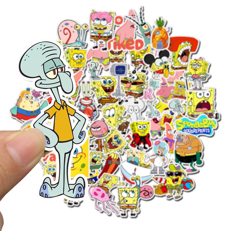 50pcs Spongebob Squarepants Motif Stickers For Kids Gift Decoration Scrapbookkoperskuter