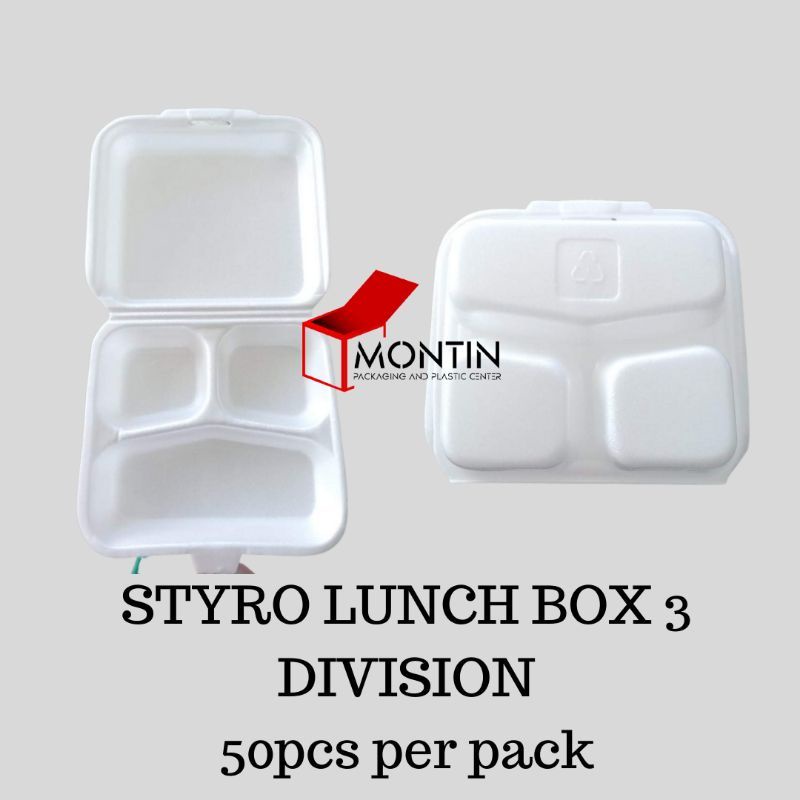 50pcs Styro Lunch Box 3 Division