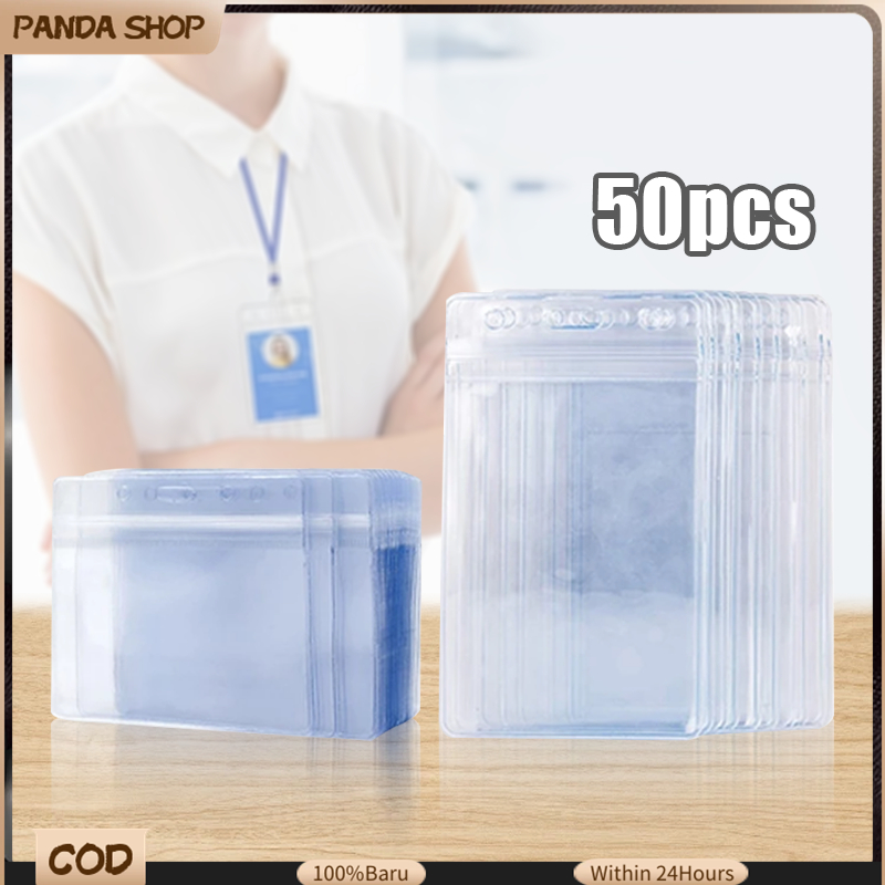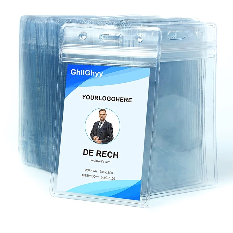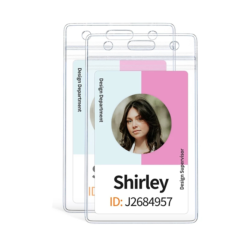 50pcs Transparent Plastic ID Holder With Zip Lock Waterproof ID Case ID Protector Vertical&Horizonta