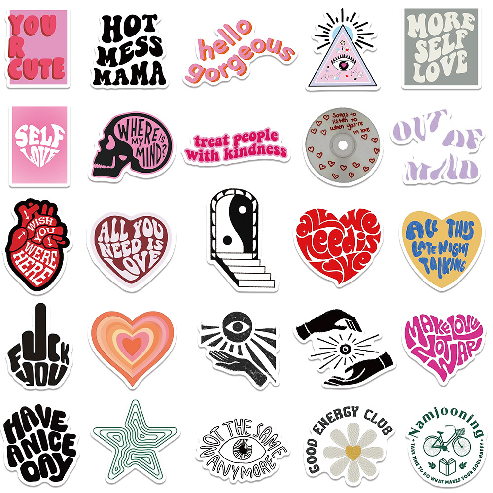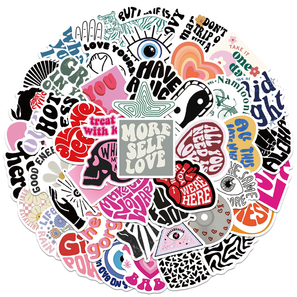 50pcs inspirational English cartoon graffiti stickers, luggage, notebook, guitar waterproof stickers