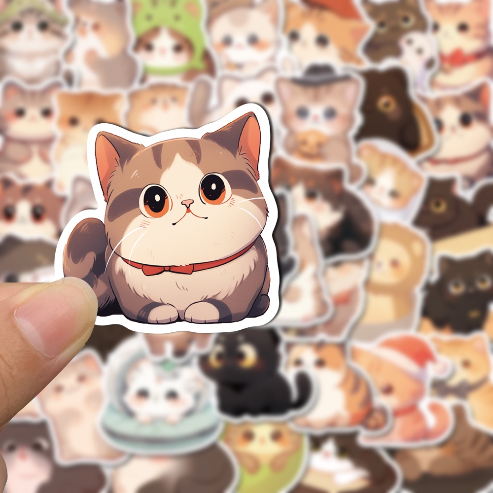 50pcs round eyed cats cute cartoon stickers creative self-adhesive stickers mobile phones iPads water cups waterproof stickers