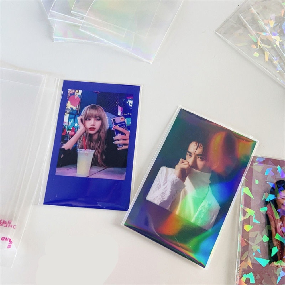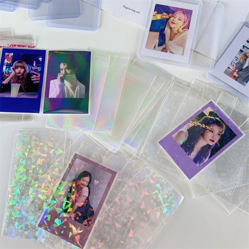 50pcs/set Transparent Seal Card Sleeves Laser Flashing Card Holographic Protector for Photo Card