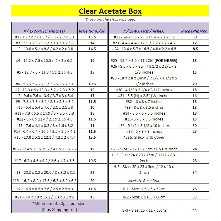 50pcs/size Clear Acetate Box - Sizes #16-#37
