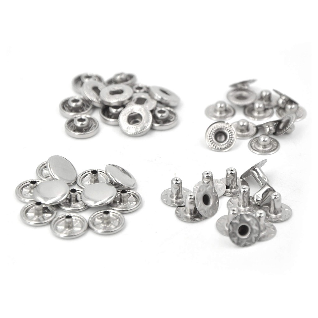 50sets Silver Color Metal Snap Fasteners Press Studs Snap Buttons 10mm #655, 12.5mm #633, 15mm #831