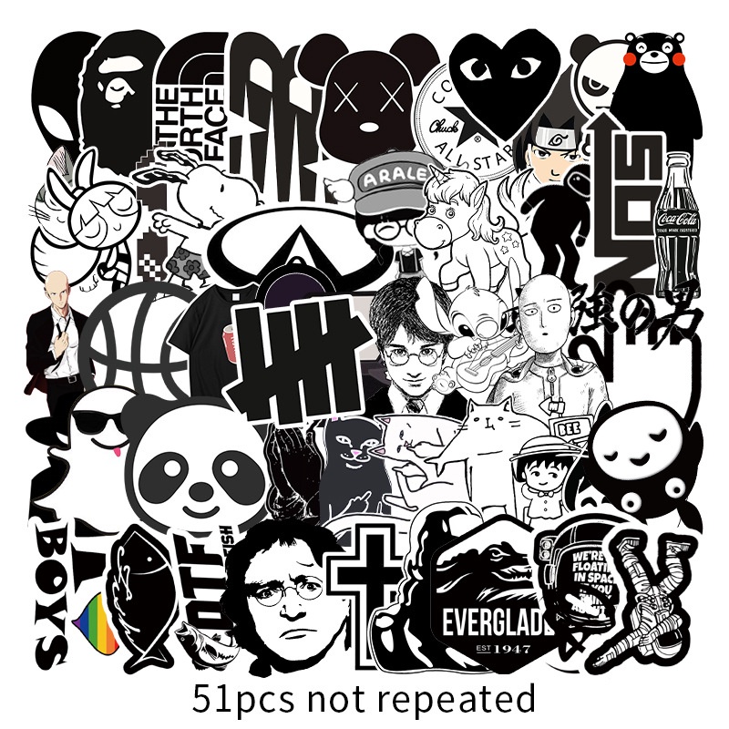 51 pcs B&W-08D wallpaper waterproof stickers graffiti anime stickers motorcycle sticker school supplies aquaflask sticker