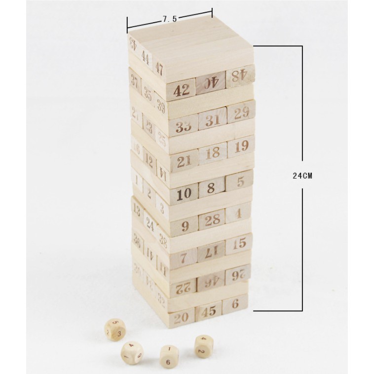 51 pieces Number Wooden Tower Stacking Game Building Blocks Toy Domino Stacker Educational Stack Game