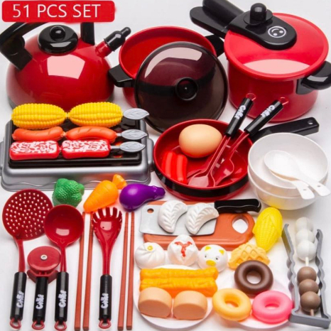 51PCS/Set Cooking Toys Kids Play House Toy Kitchen Utensils Cooking Pots Pans Dishes Cookware
