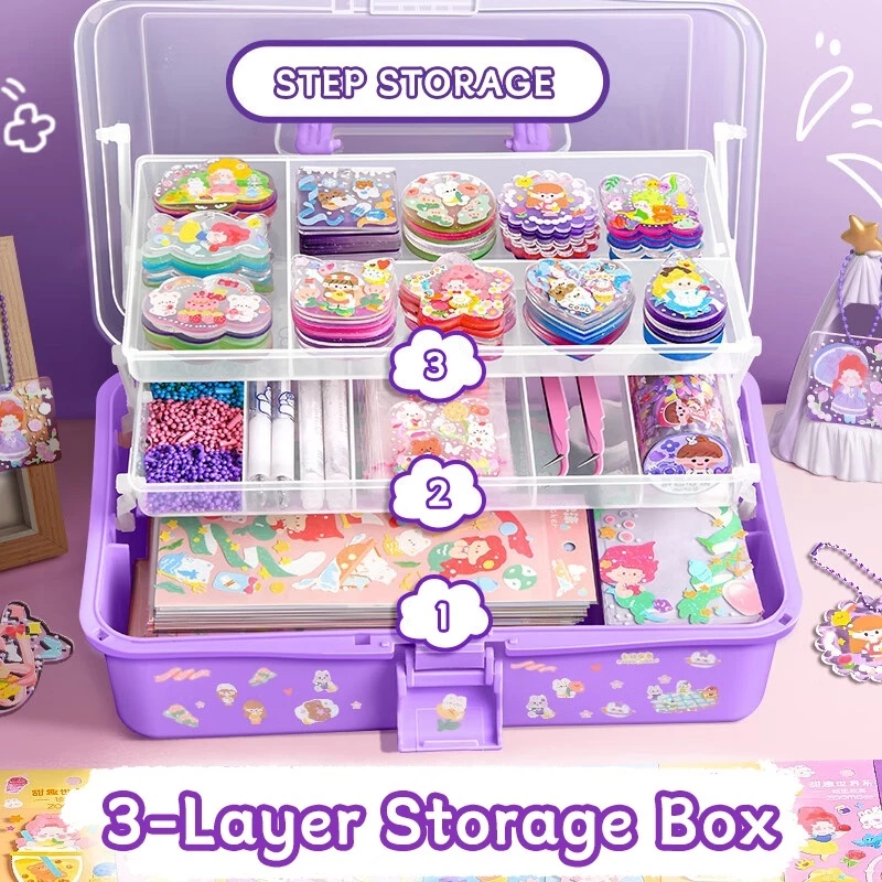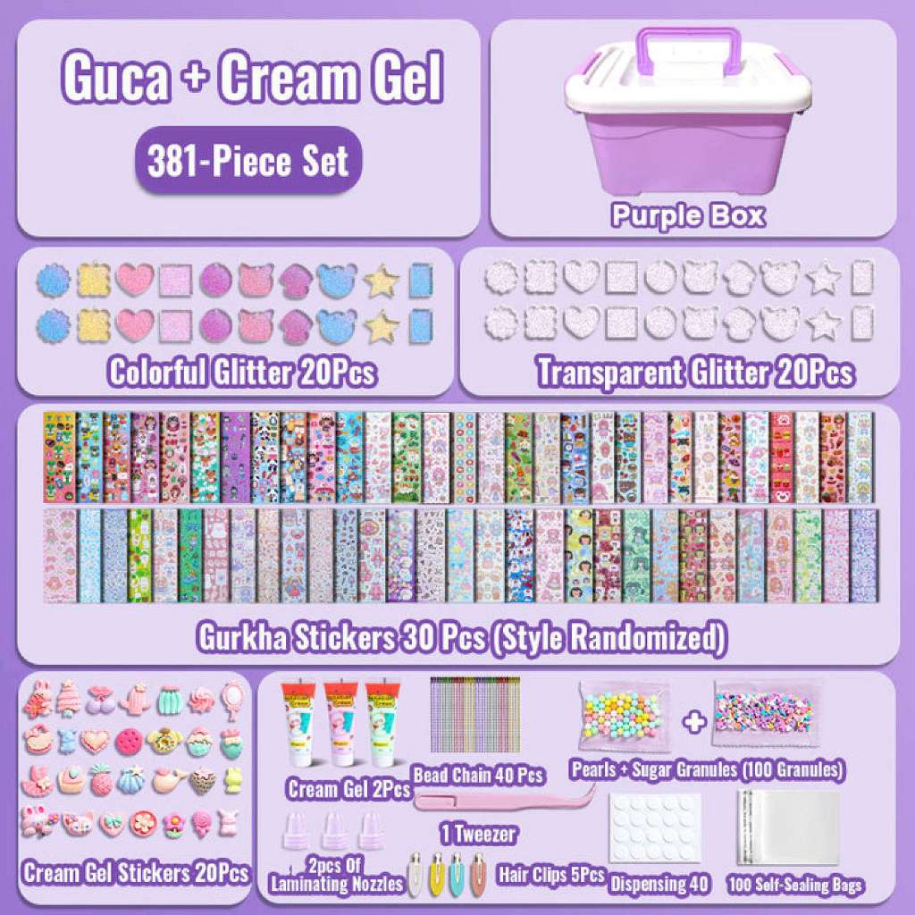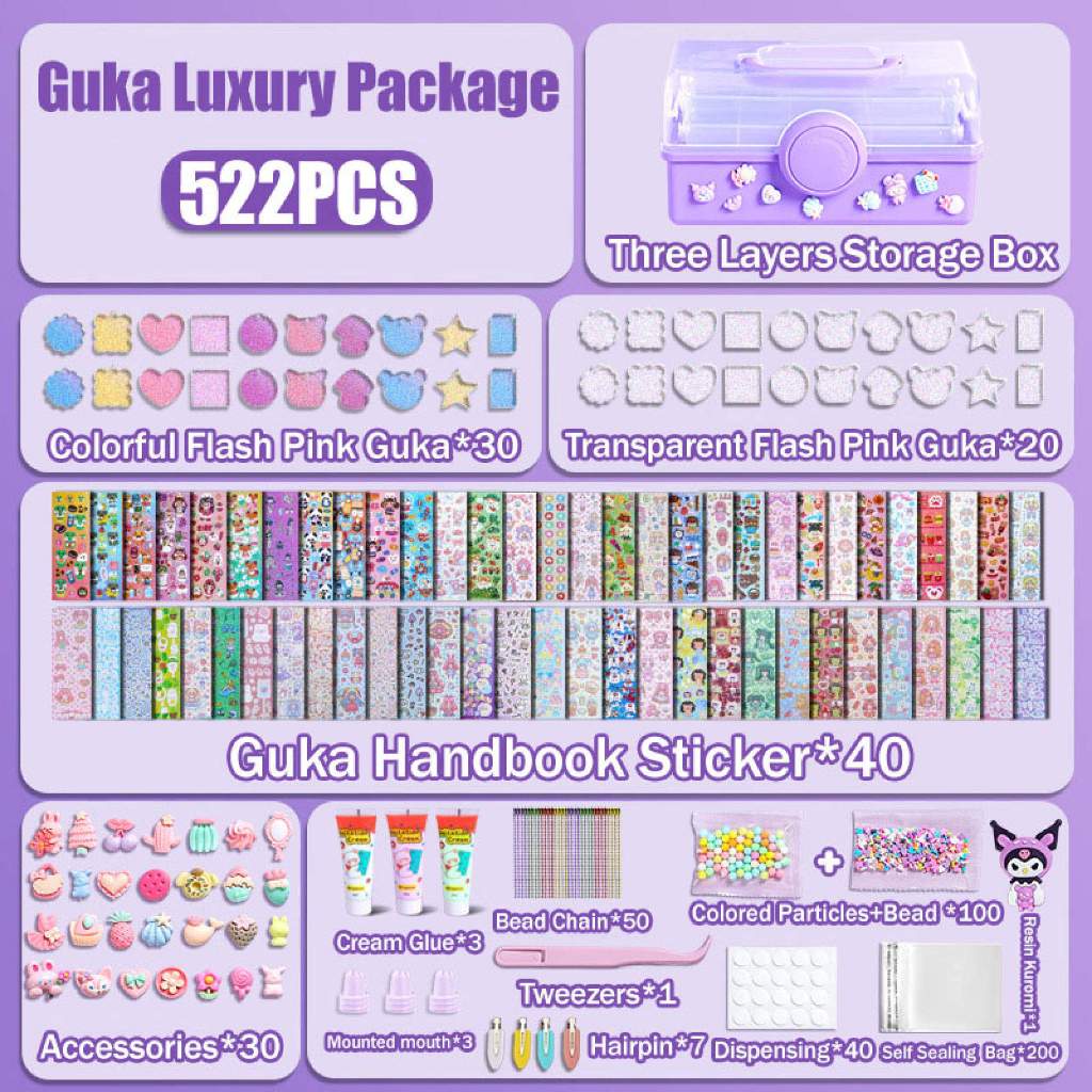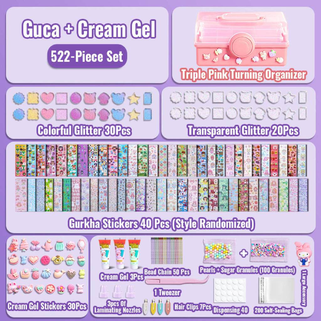 522PCS GuKa Pro GuKa Children's Set Cream gel DIY 3-Layer Storage Box DIY Gift Set Handmade Sticker Gift Box Girl Toy Pink Box Girl Birthday Gift Girl Blind Box Set