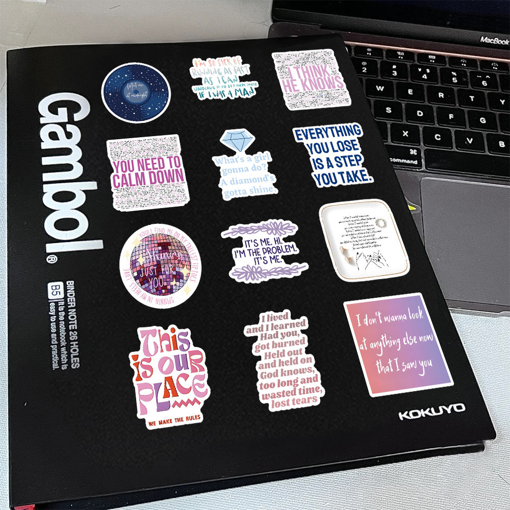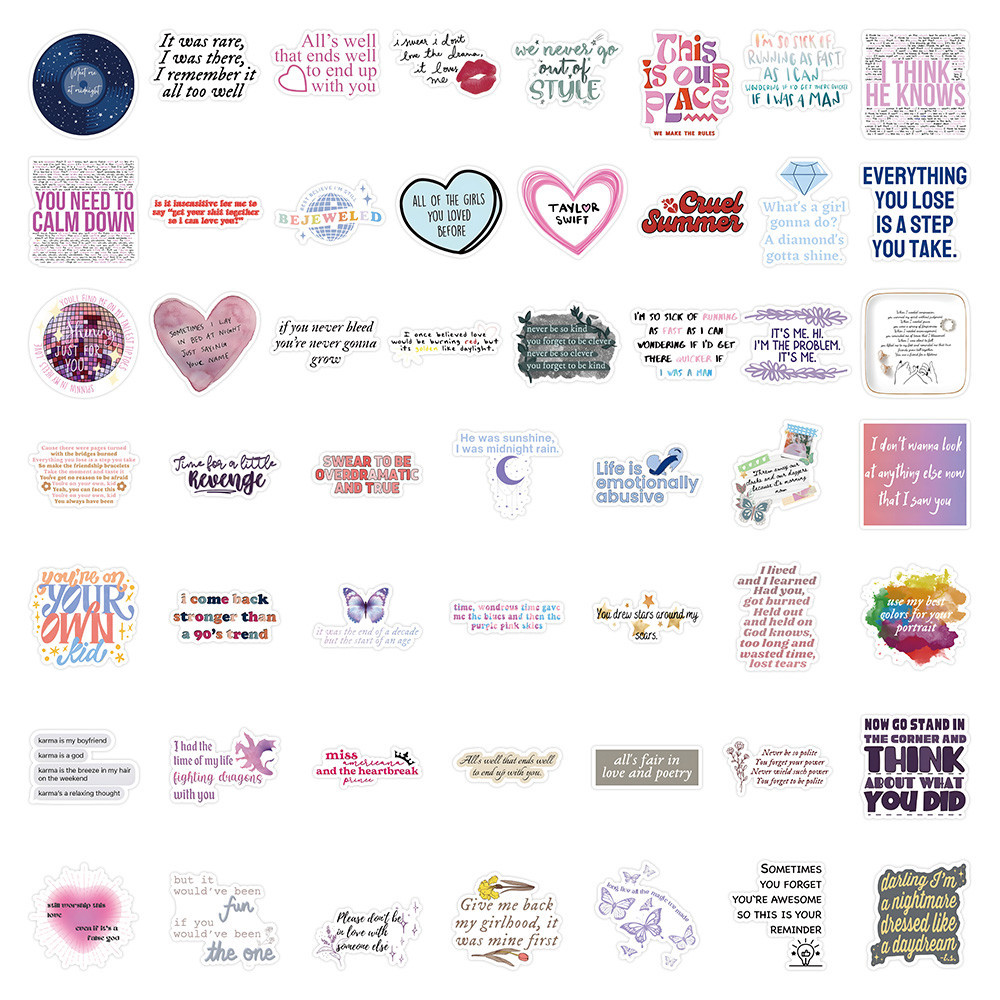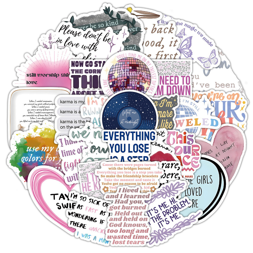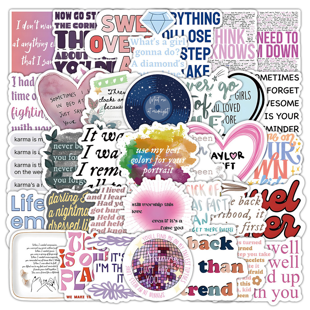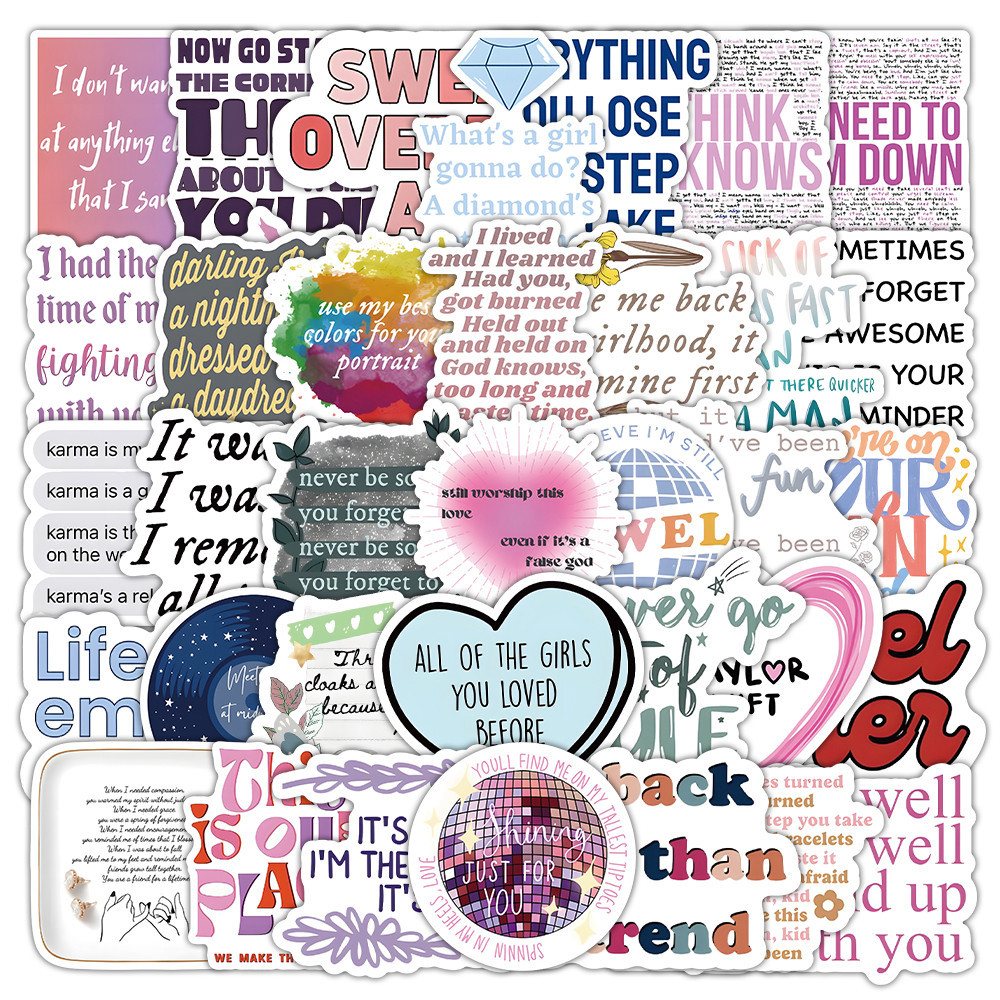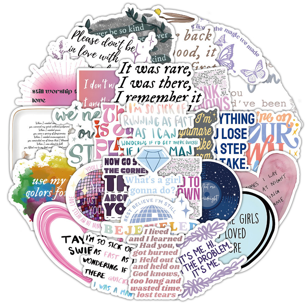 52PCS Taylor Swift Classic Song Lyrics Graffiti Stickers for Helmet Bicycle Hand Account Pencil Case Decals LanLanStickersWorld