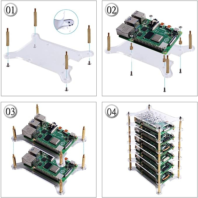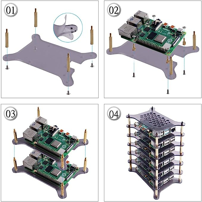 52Pi 6-Layers Raspberry Pi Cluster Case,Raspberry Pi Rack Case with Raspberry Pi Heatsinks Stackable Case Stack Enclosure