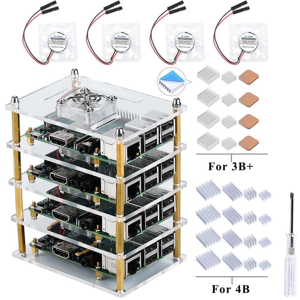 52Pi Raspberry Pi Cluster Case for Raspberry Pi 4 Model B, Raspberry Pi Case with Cooling Fan and Raspberry Pi Heatsink