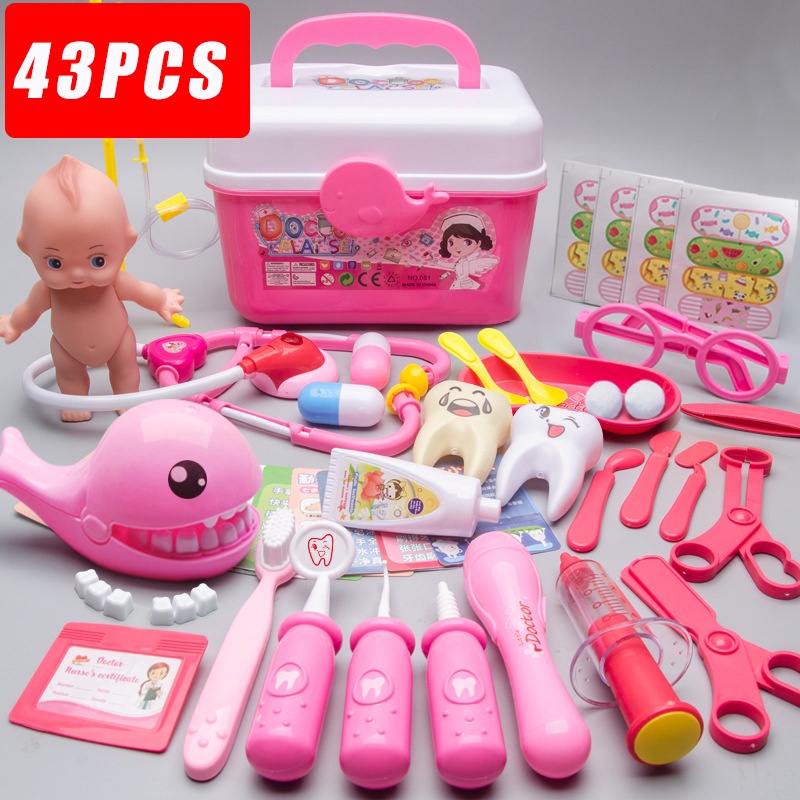53 PCS Doctor Toy Set Dentist Kit Nurse Stethoscope Medical Box Children's Role Play For Kids Gift