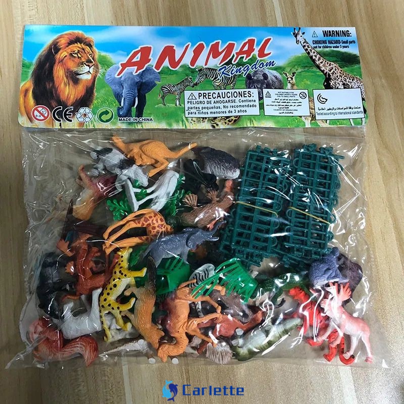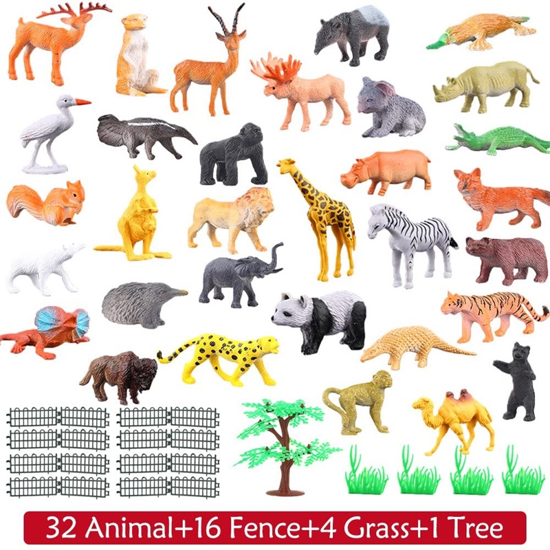 53pcs Jungle Animals Figures Wild Zoo Toys Set Giraffe, Lion Panda Monkey For Kids Cupcake Topper