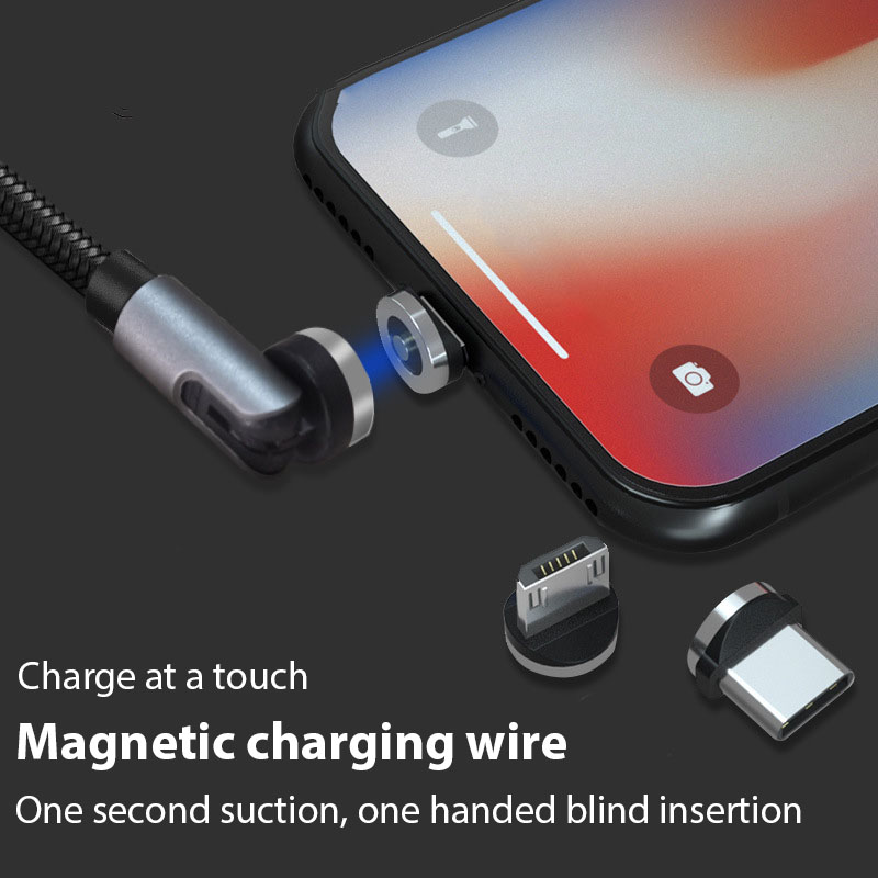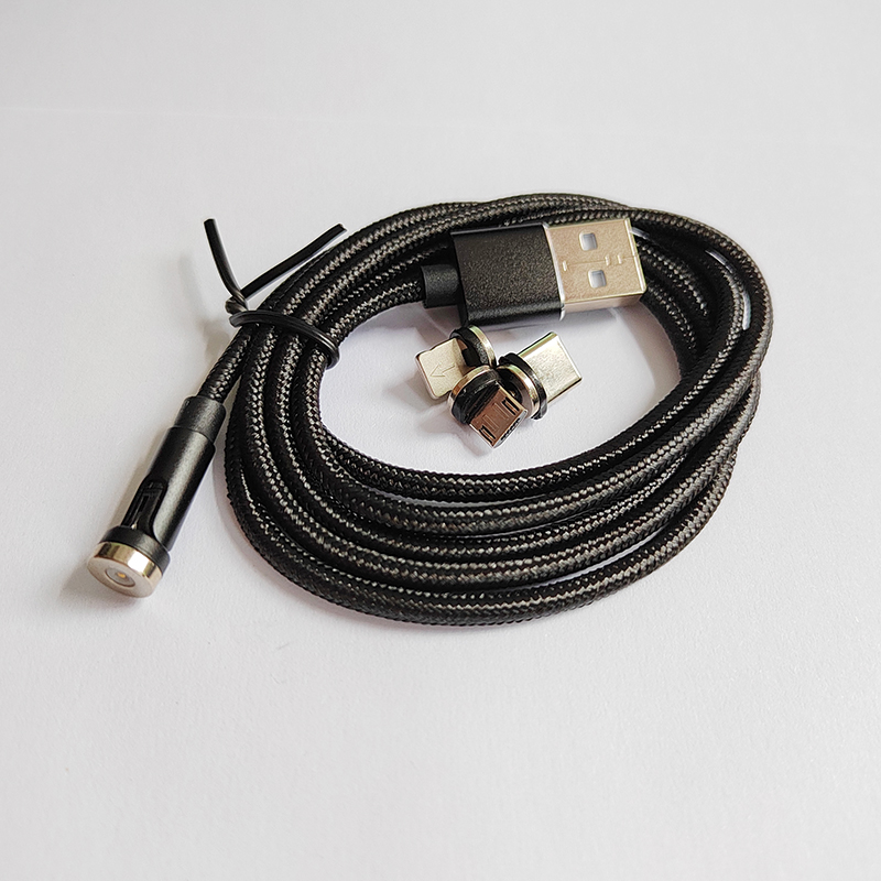 Three-in-One Bending Cable 1 Meter 540-Degree conversion head rotating magnetic Suction Android Type-C data cable