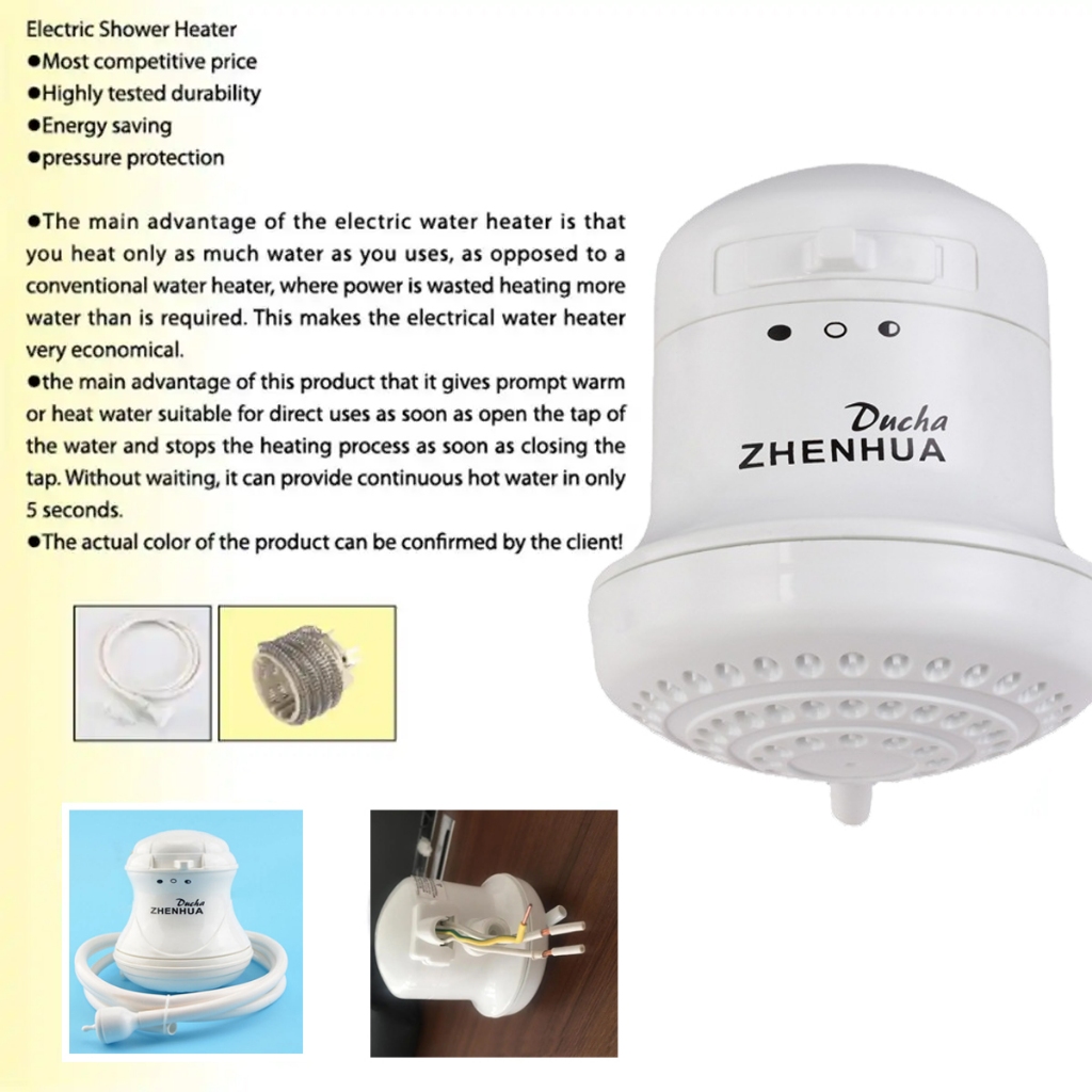 5400W Electric Shower Head Instant Hot Water Heater 3 Temperature Adjustable Calorifier with Hose