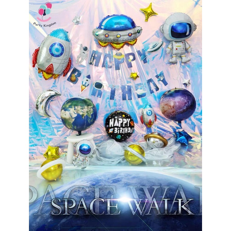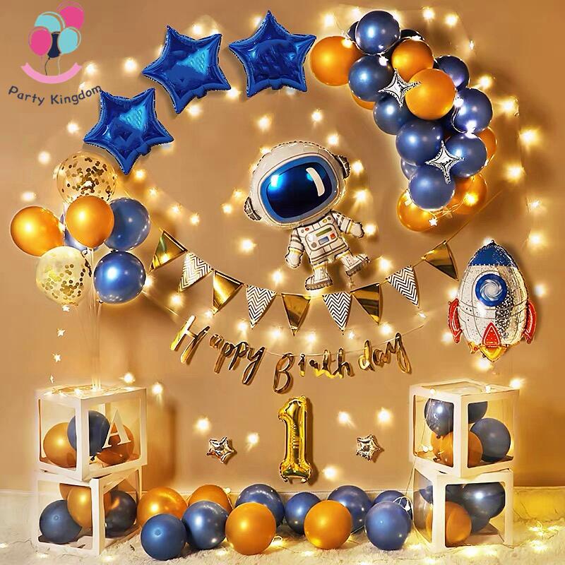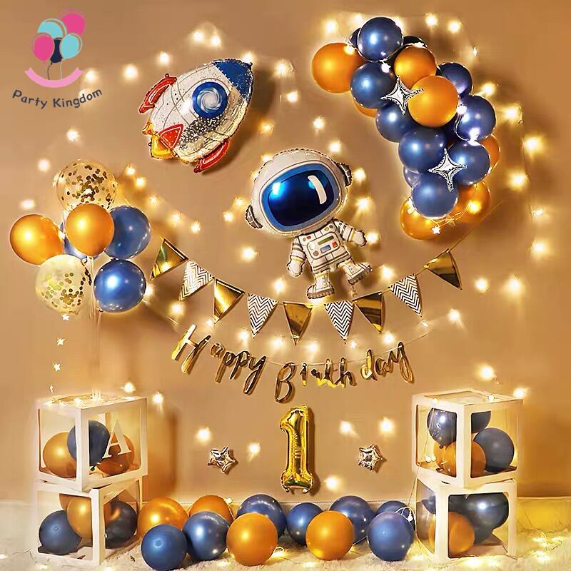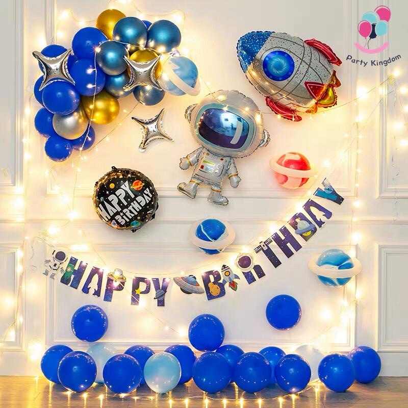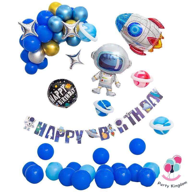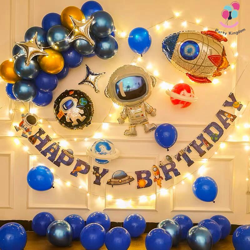 54Pcs Outer Space Birthday Theme Set Astronaut Rocket Spaceship Galaxy Foil Balloon Kids Party Decor