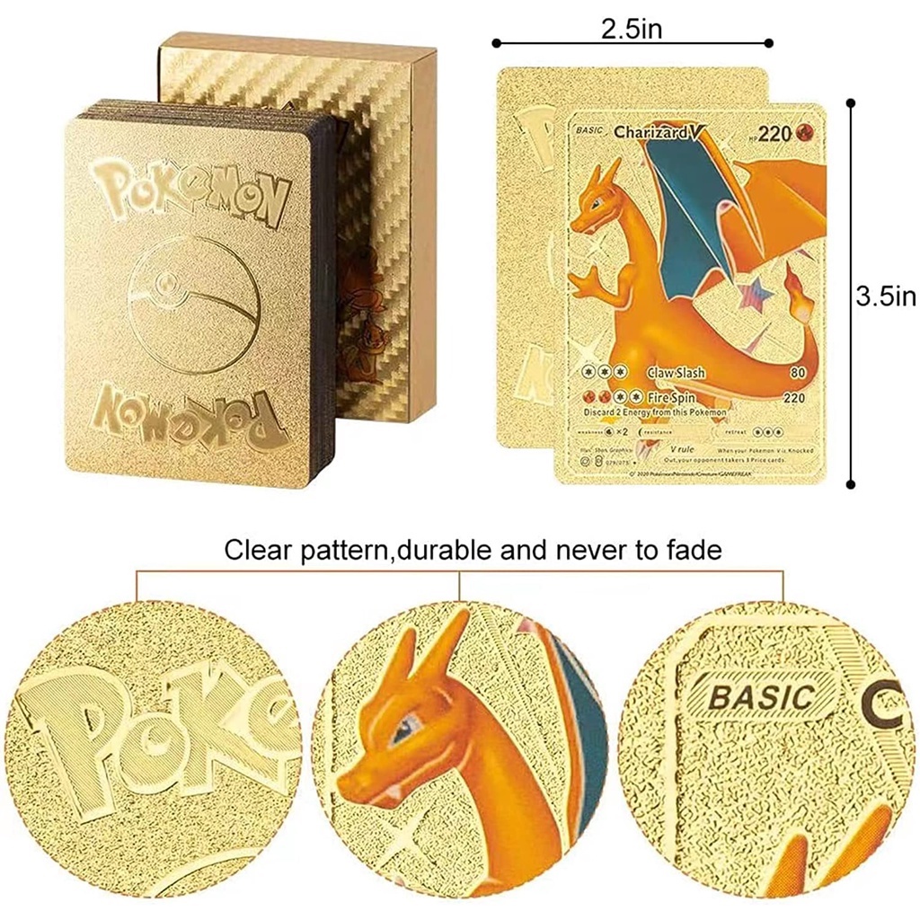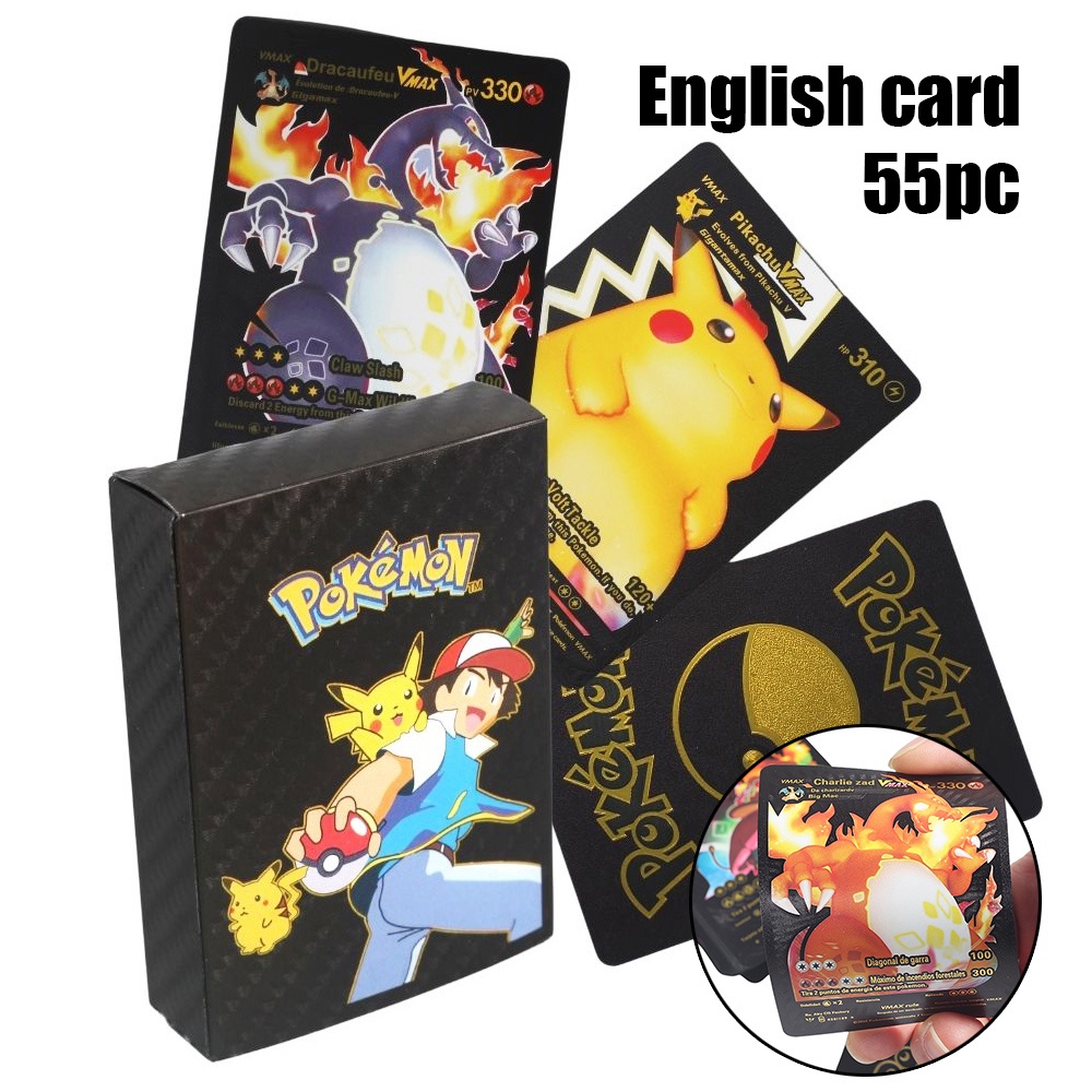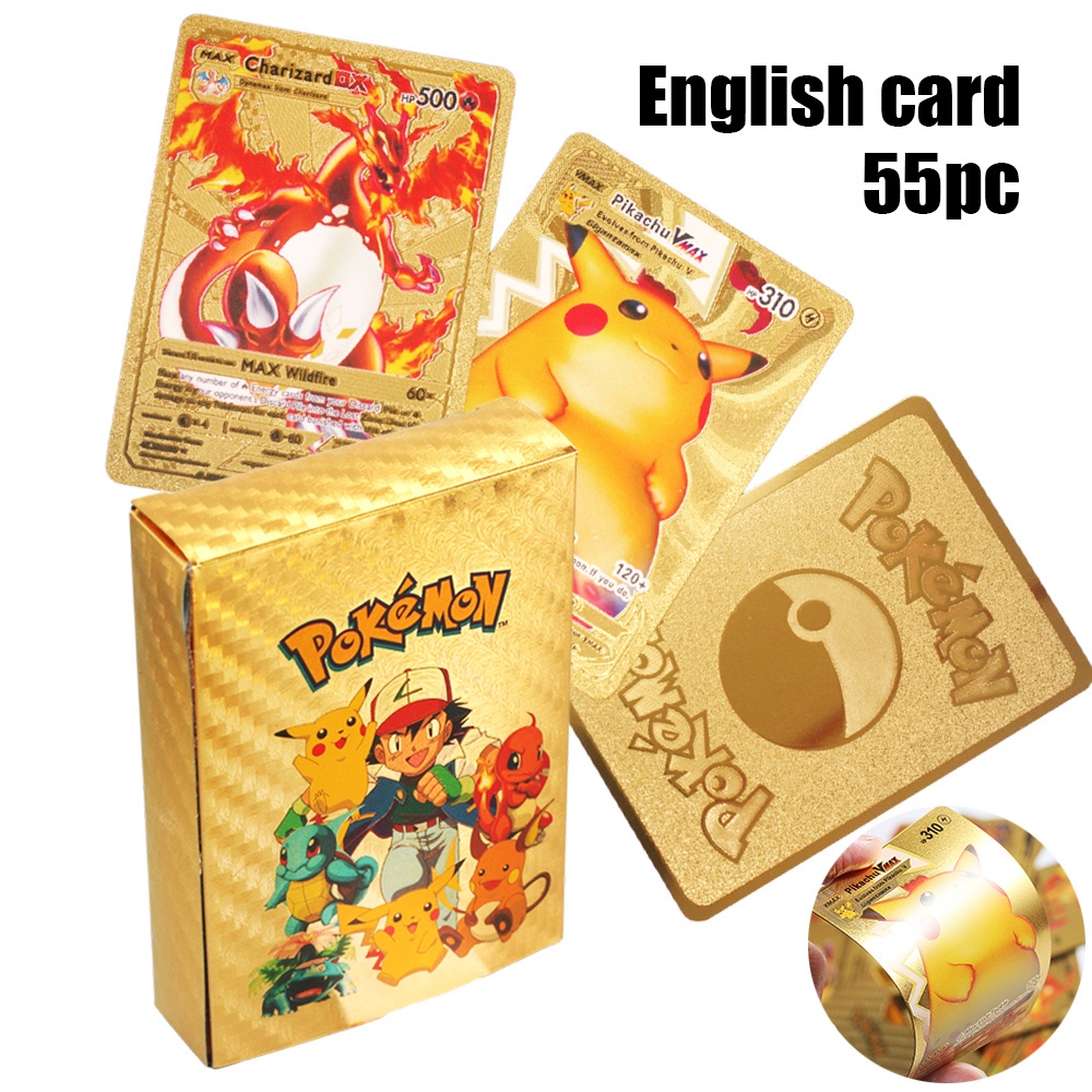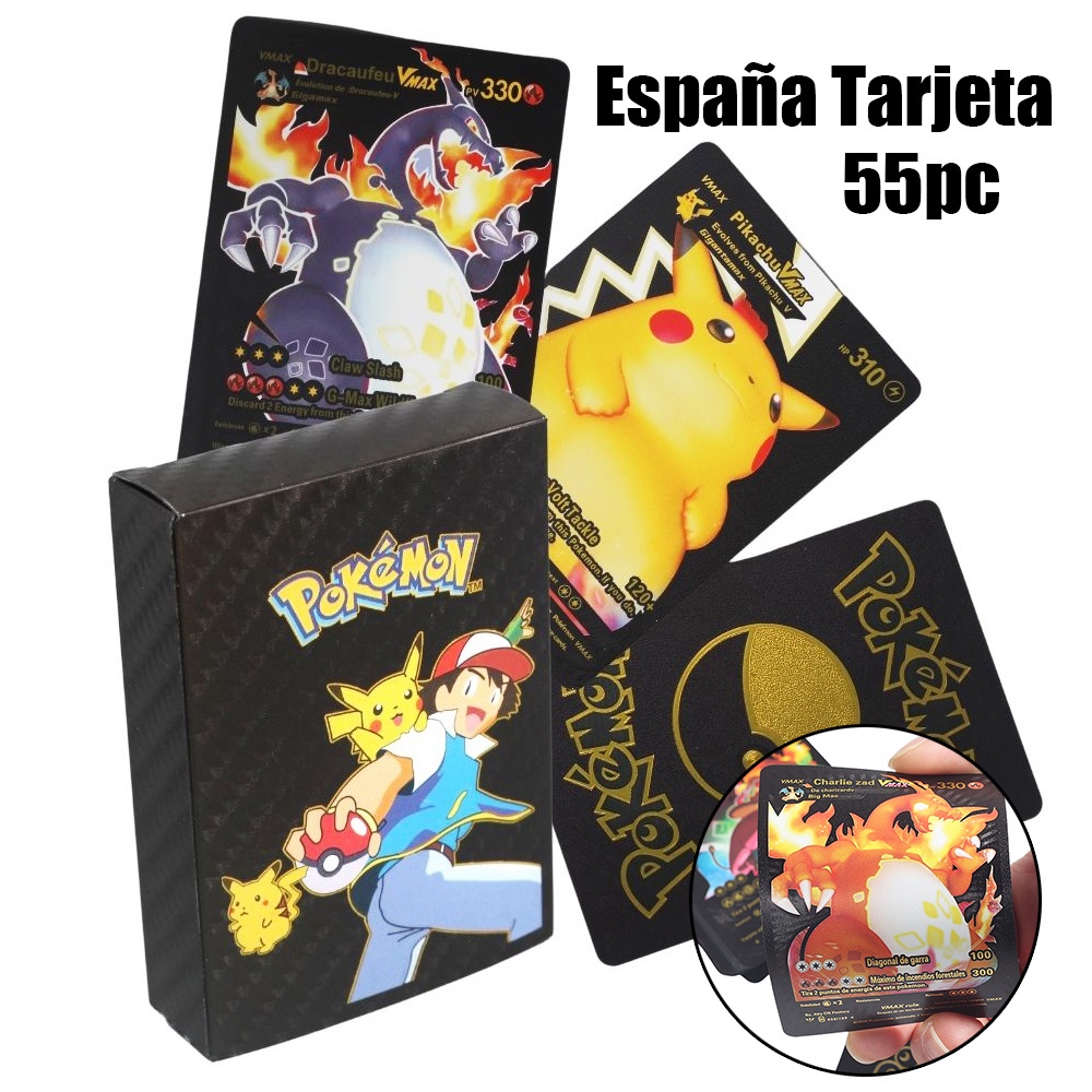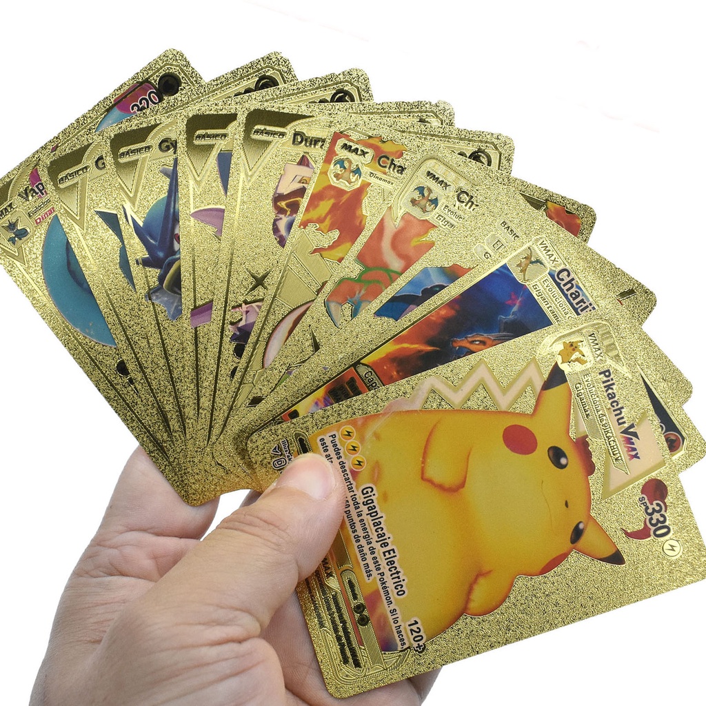 54ps English / Spanish Pokemon Cards Game Metalicas Collection Metal GX Card Charizard Golden V Vmax Pet Sprite Card