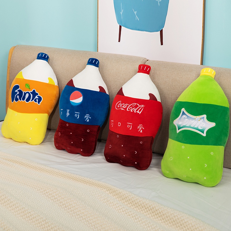 55*30CM Simulation Carbonated Drinks Plush Pillow Funny Sprite Coke Coca Cola Soda Soft Stuffed Cartoon Doll Back Cushion Gifts