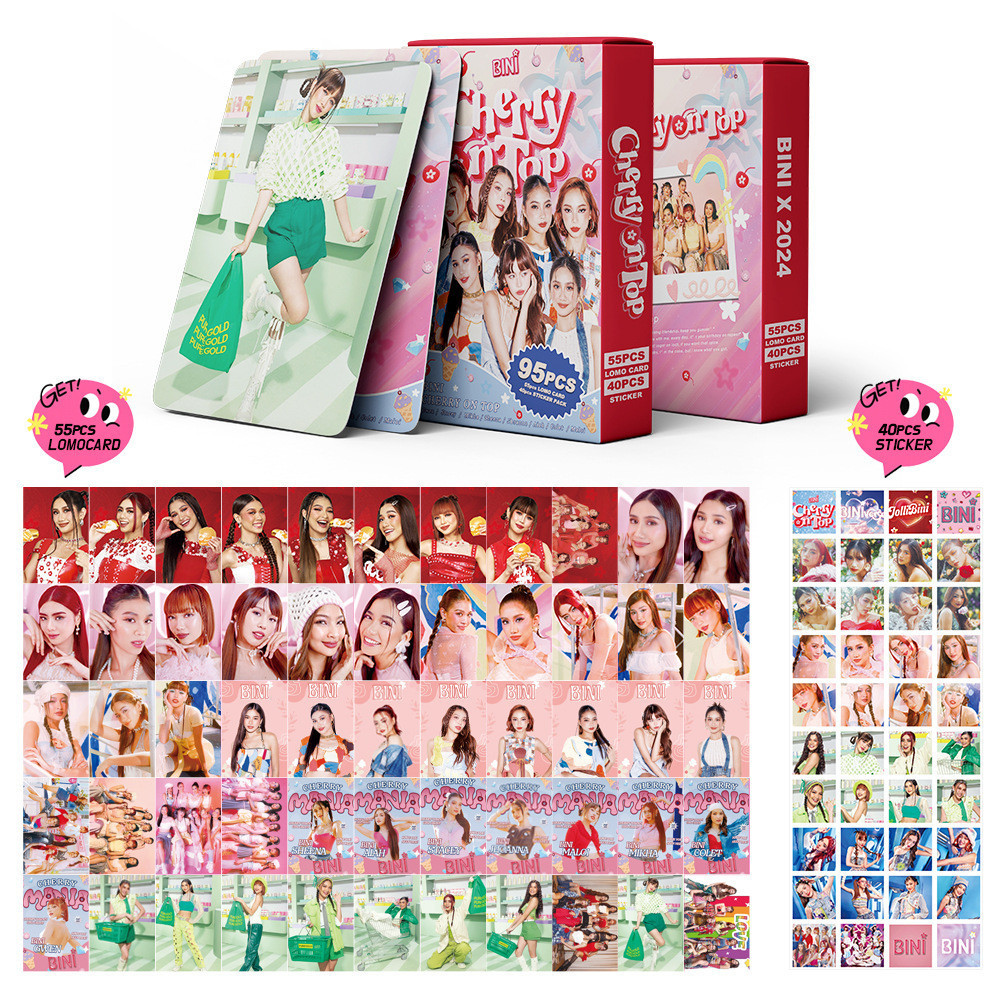 55 Pcs BINI Photocards Cherry on Top Holographic Card Mikha Maloi Colet Lomo Card Aiah Colet Stacey Gwen Photo Album Idol Collectibles