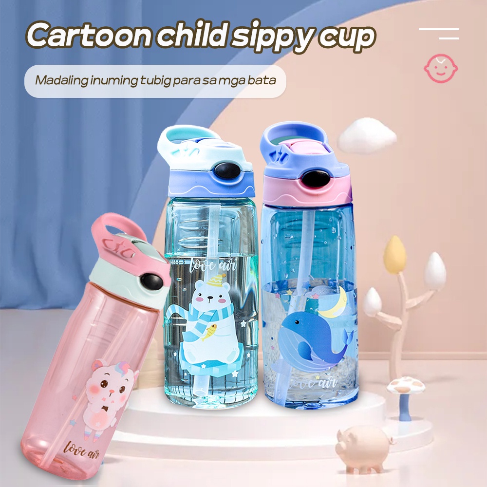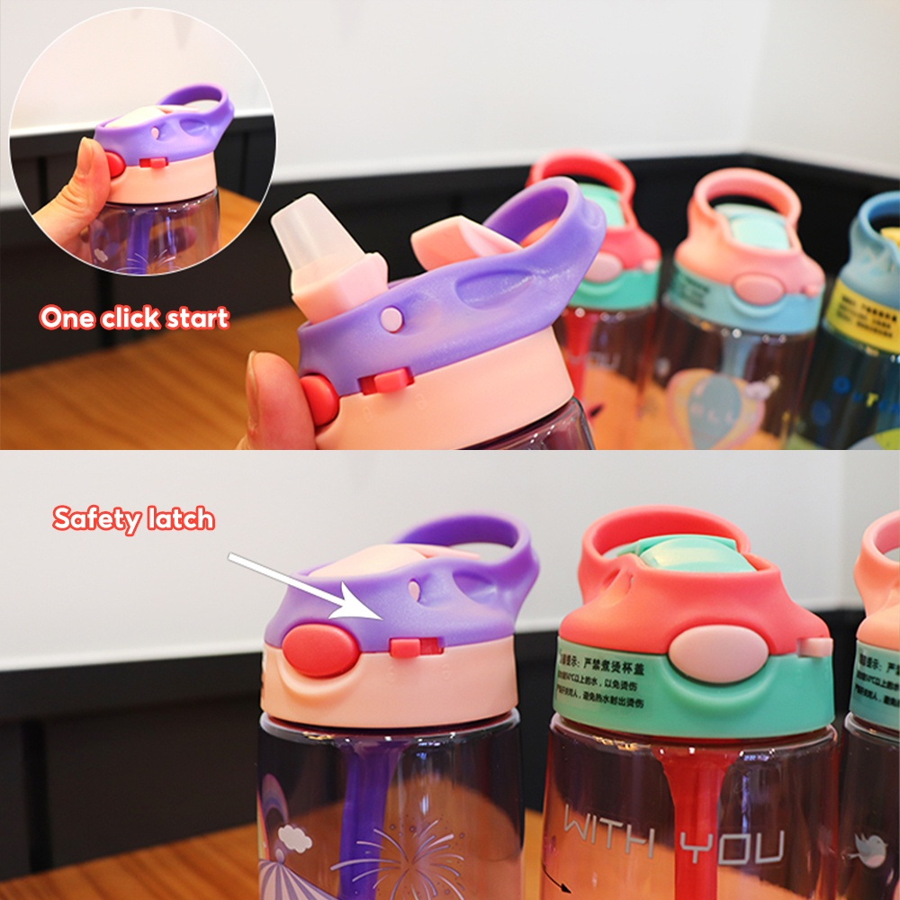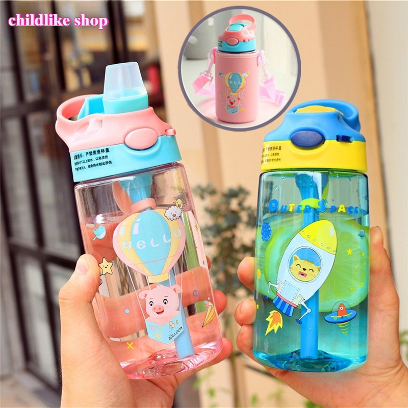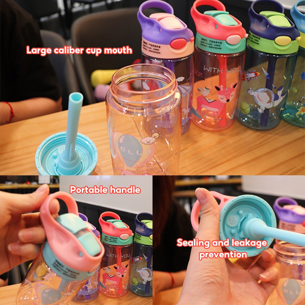 550ML Children's Sippy Cup Water Bottle Tumbler With Straw Cute Cartoon School Children Water Cup