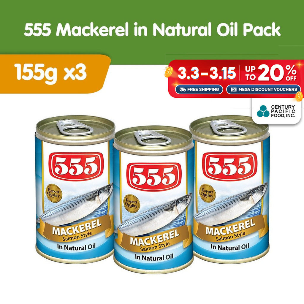 555 Mackarel in Natural Oil 155g (Pack of 3)