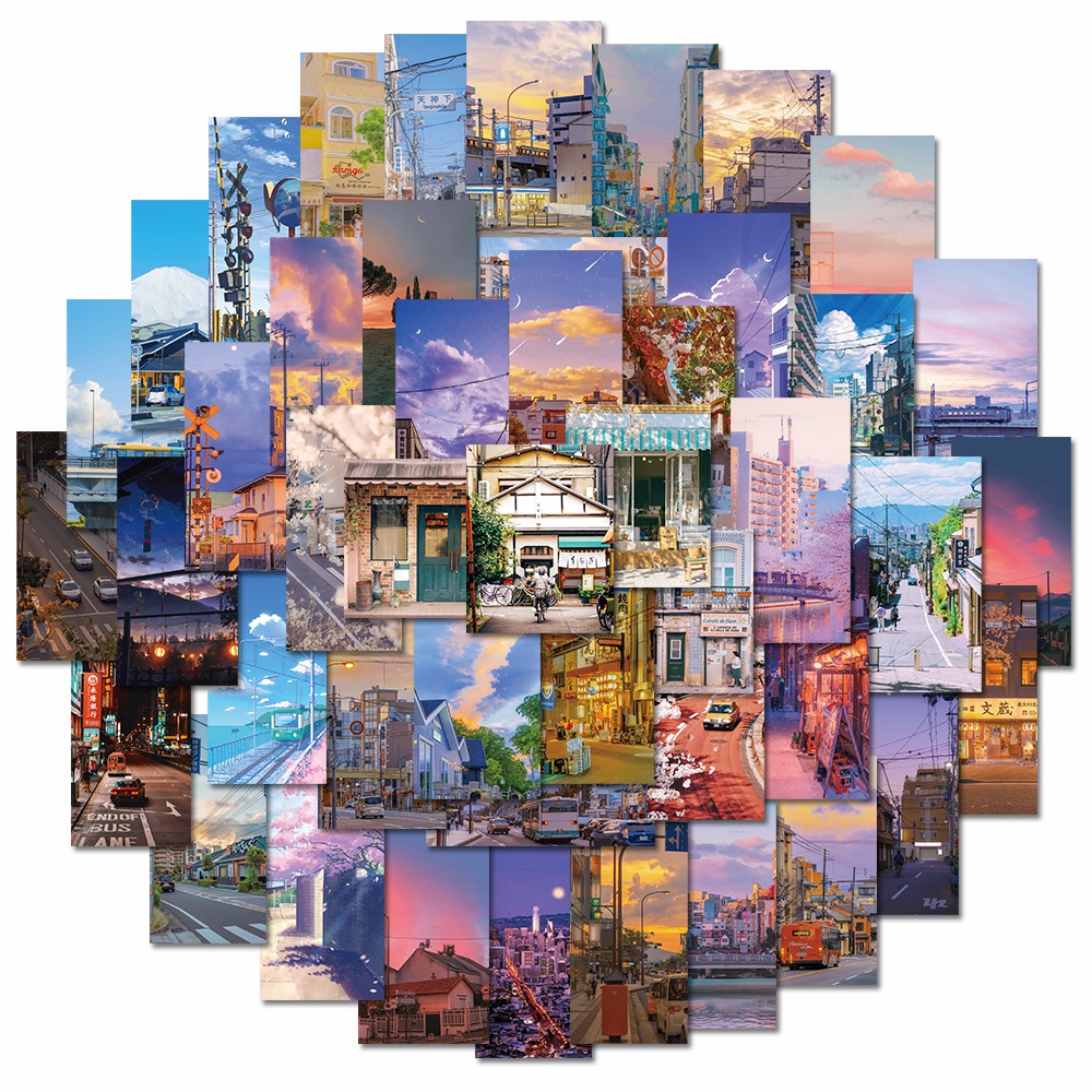 55pcs street view stickers mobile phone decorative stickers computer water cup waterproof stickers
