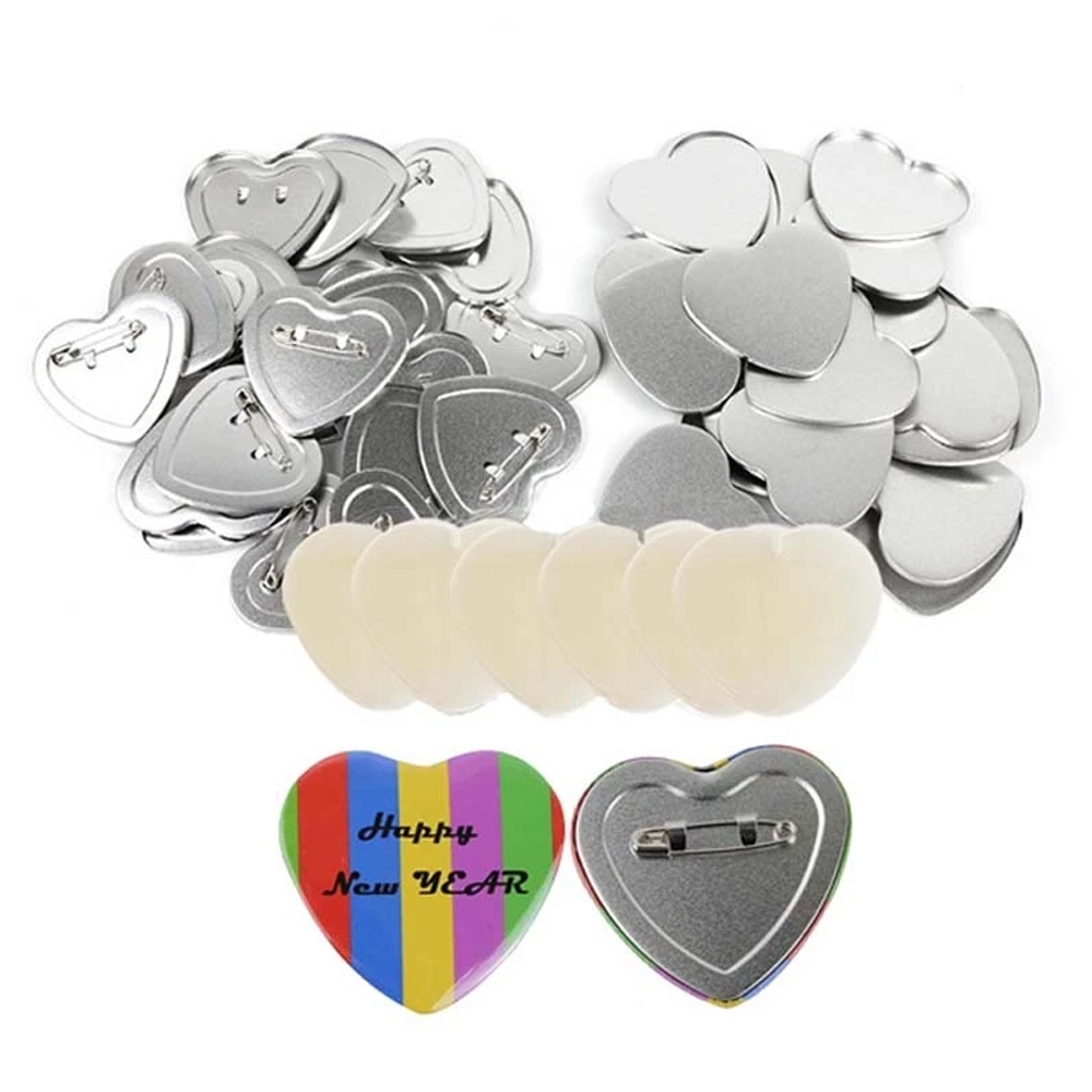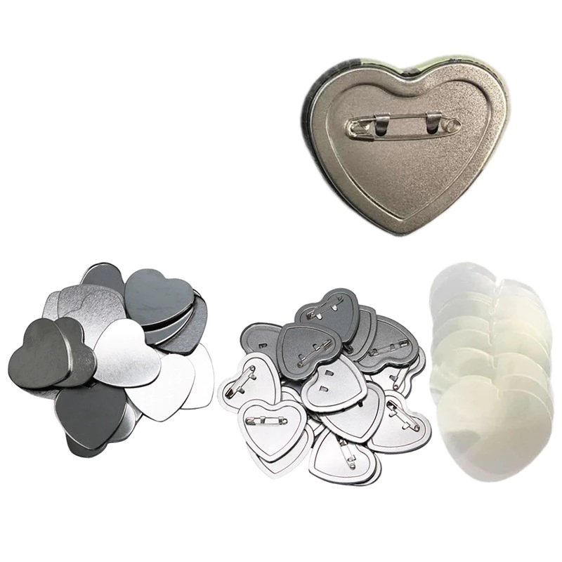 57*53mm 100 Set Heart Shape Button Maker Blank Button Badges DIY Pin Buttons Supplies
