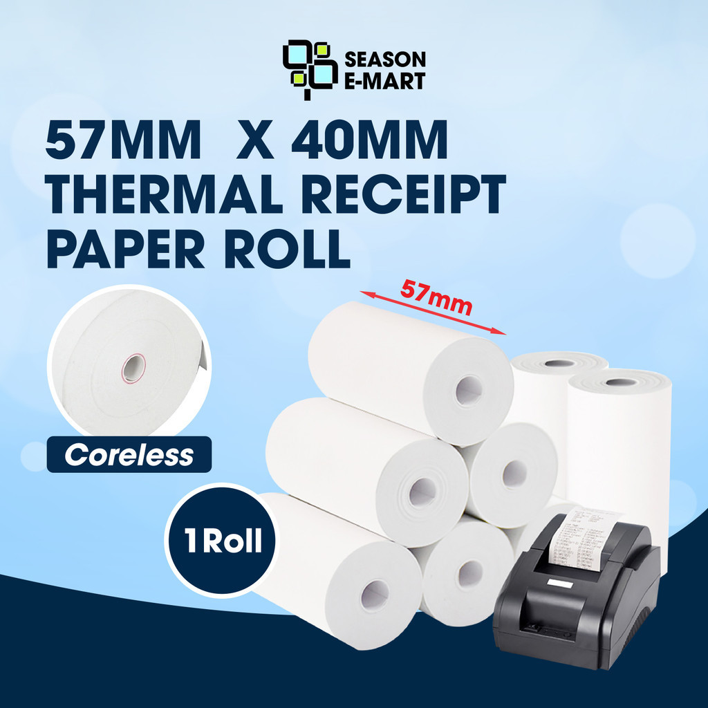 57mm Thermal Paper Coreless Thermal Receipt Paper Roll POS Receipt Foodpanda Grab Kertas Resit Cash Register TP01