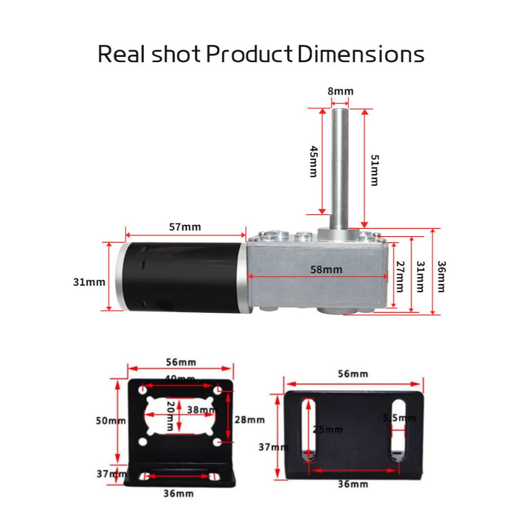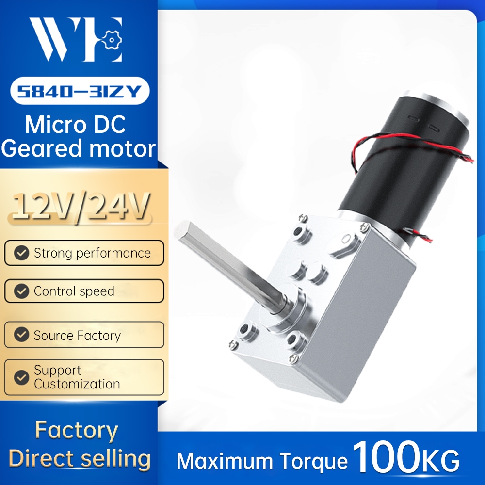 5840-31ZY-51 Brushed Motor 12V/24V Forward And Reverse Adjustable Speed 7RPM~470RPM Shaft Length 51MM High Torque Worm Gear DC Motor Turntable Door Self-locking