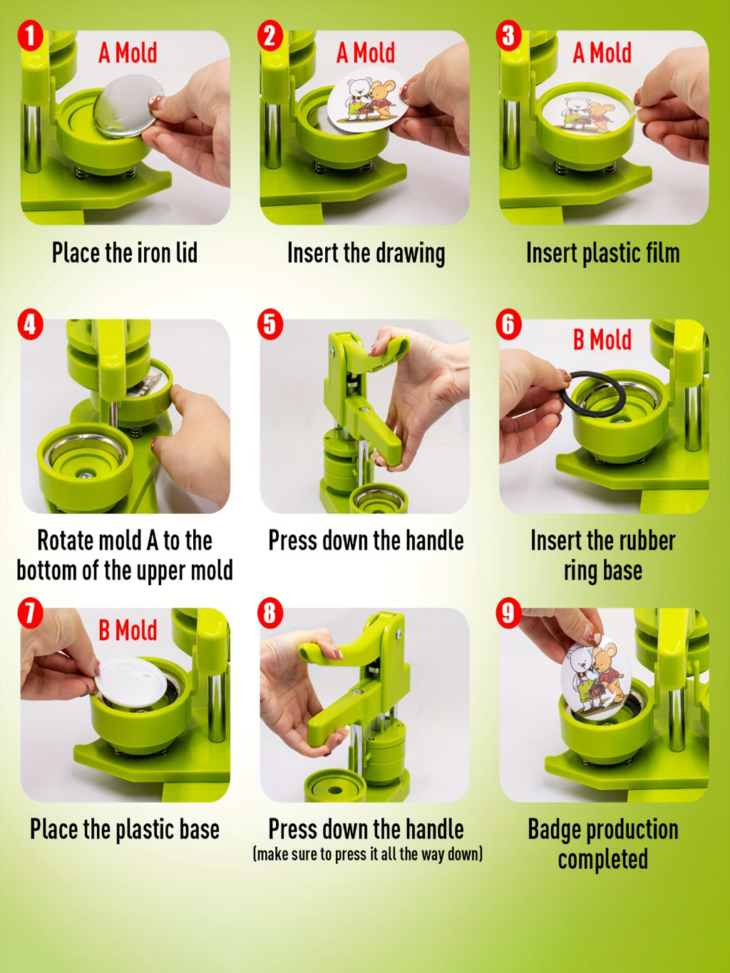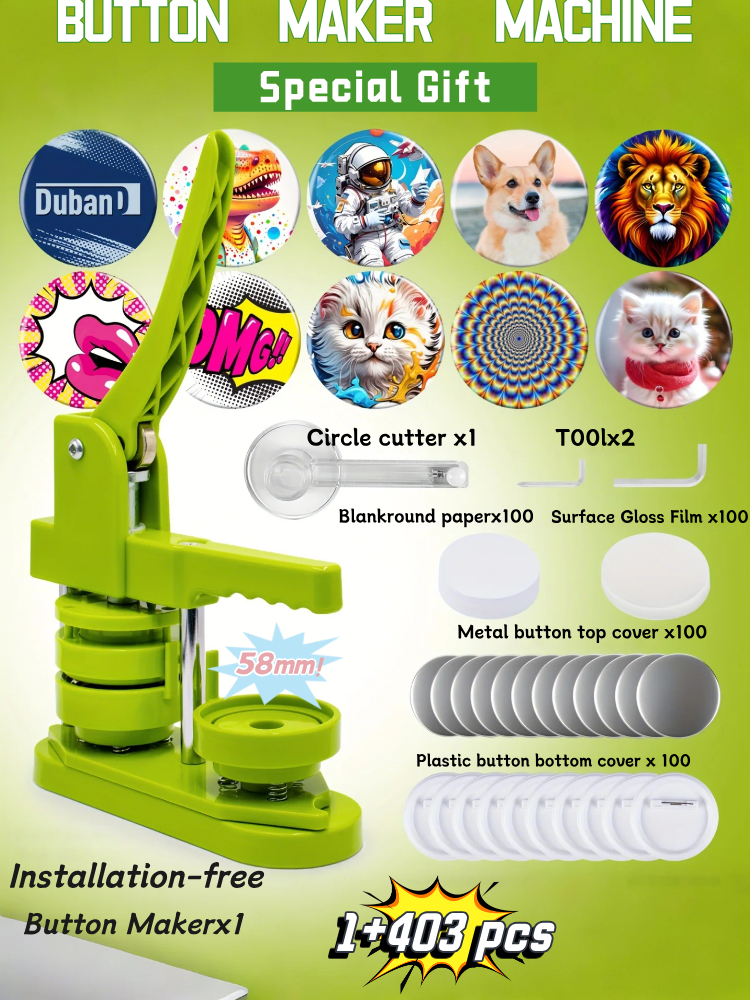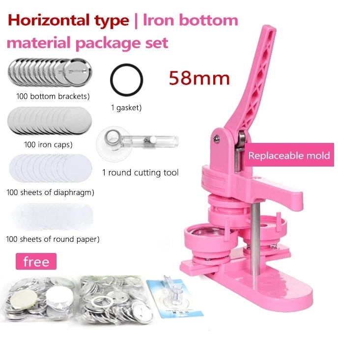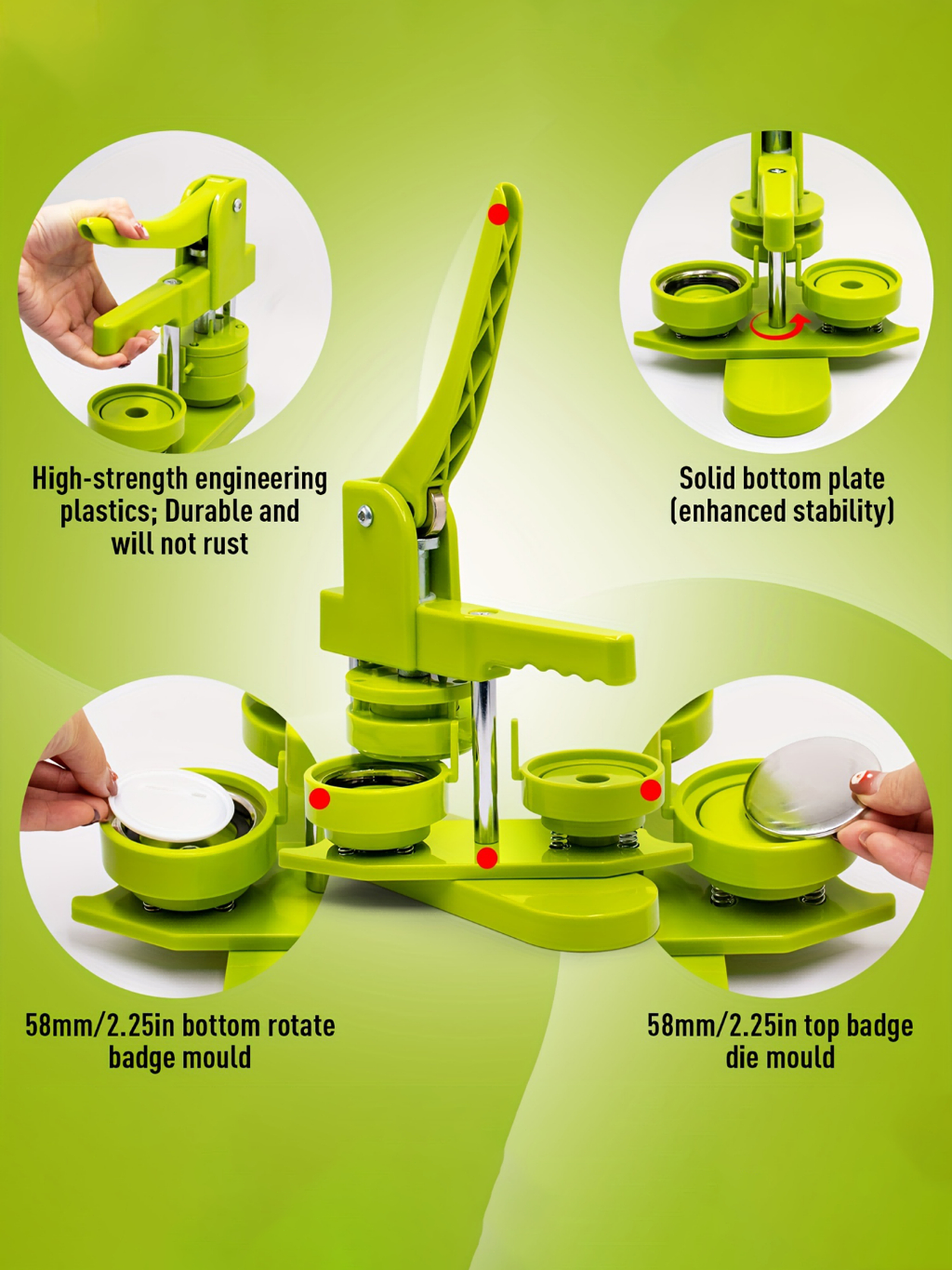 58mm Pin Maker Machine DIY Button Badge Press Heavy Duty Magnet Binding Kit 3in1 Set for Custom Mold
