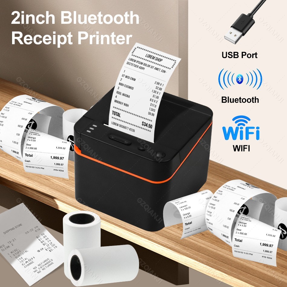 58mm USB WiFi Bluetooth Thermal Receipt POS Printer Bill Wireless Android Windows Maker for Retail Store Connect Cash Drawer