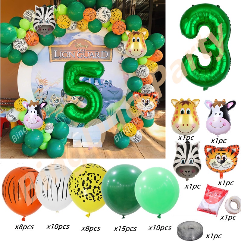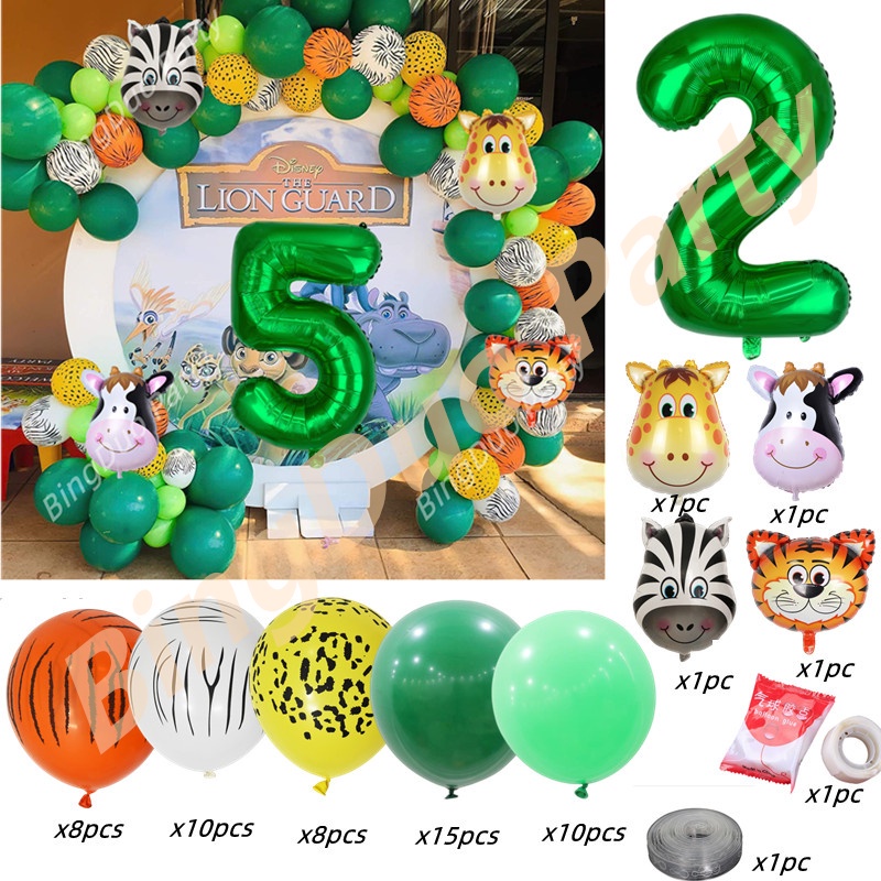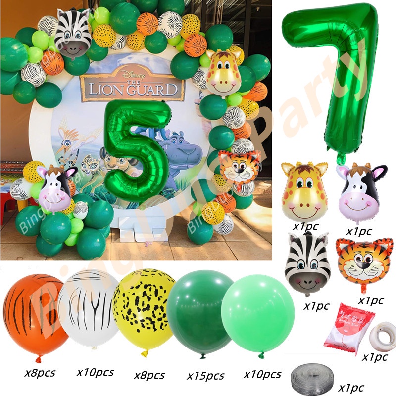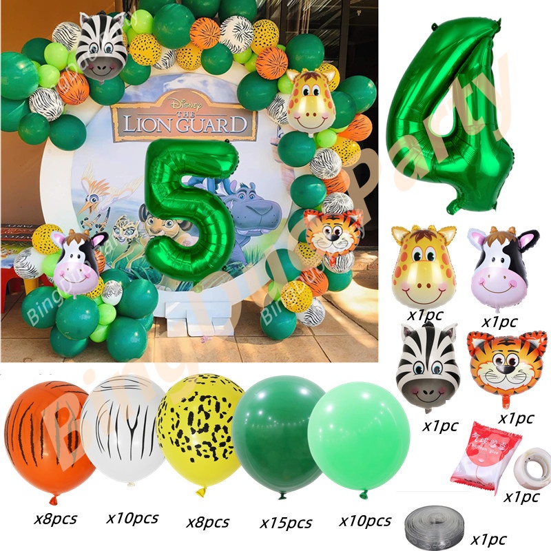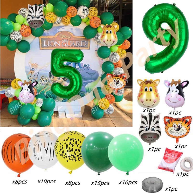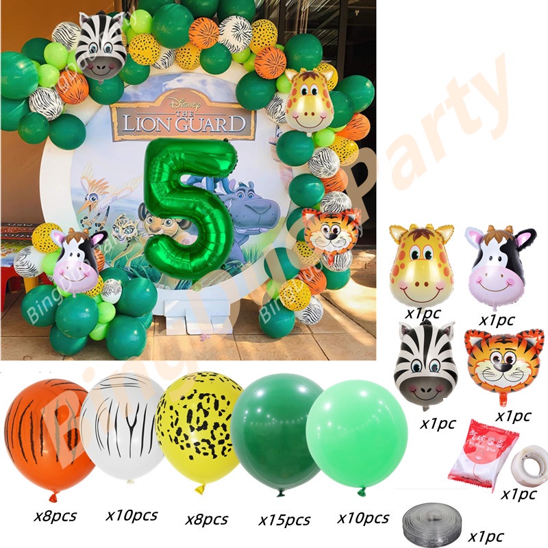 58pcs Set Safari Theme Party Decorations Balloons Set Mini Head Balloon Green Latex Balloon Leopard Balloon Party Needs