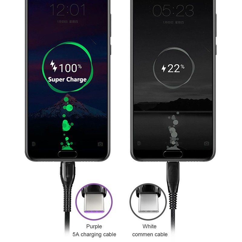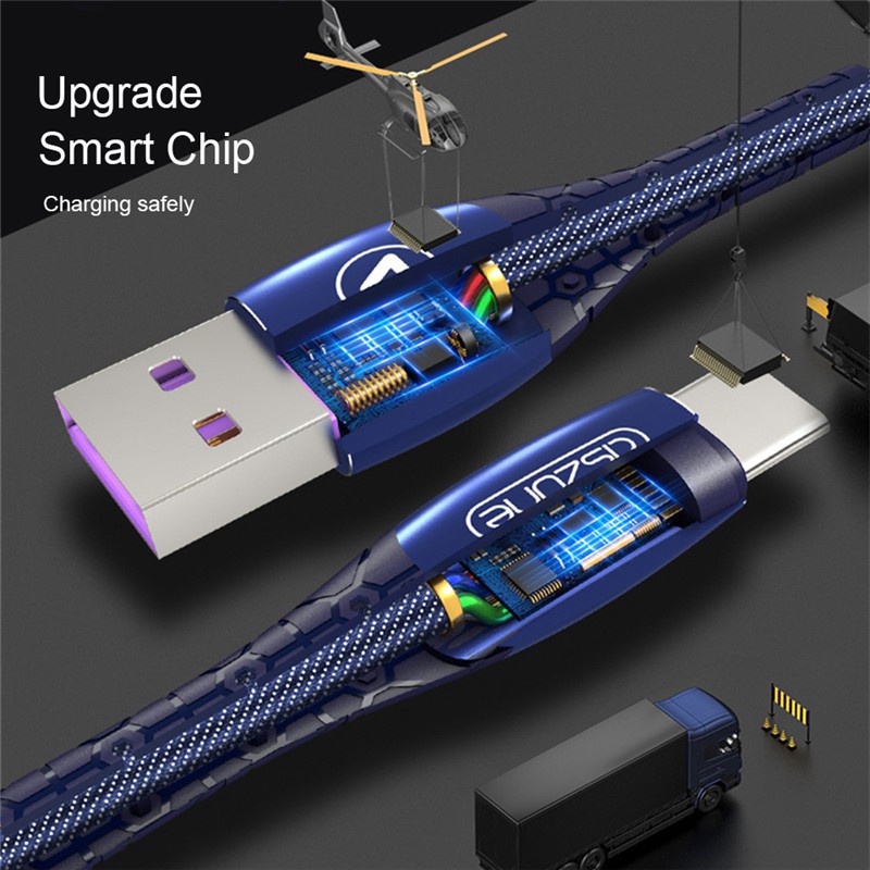 5A Super Fast Charger LED Light Micro USB/Type-C Data Cord Charging Cable for Phone Android Phone