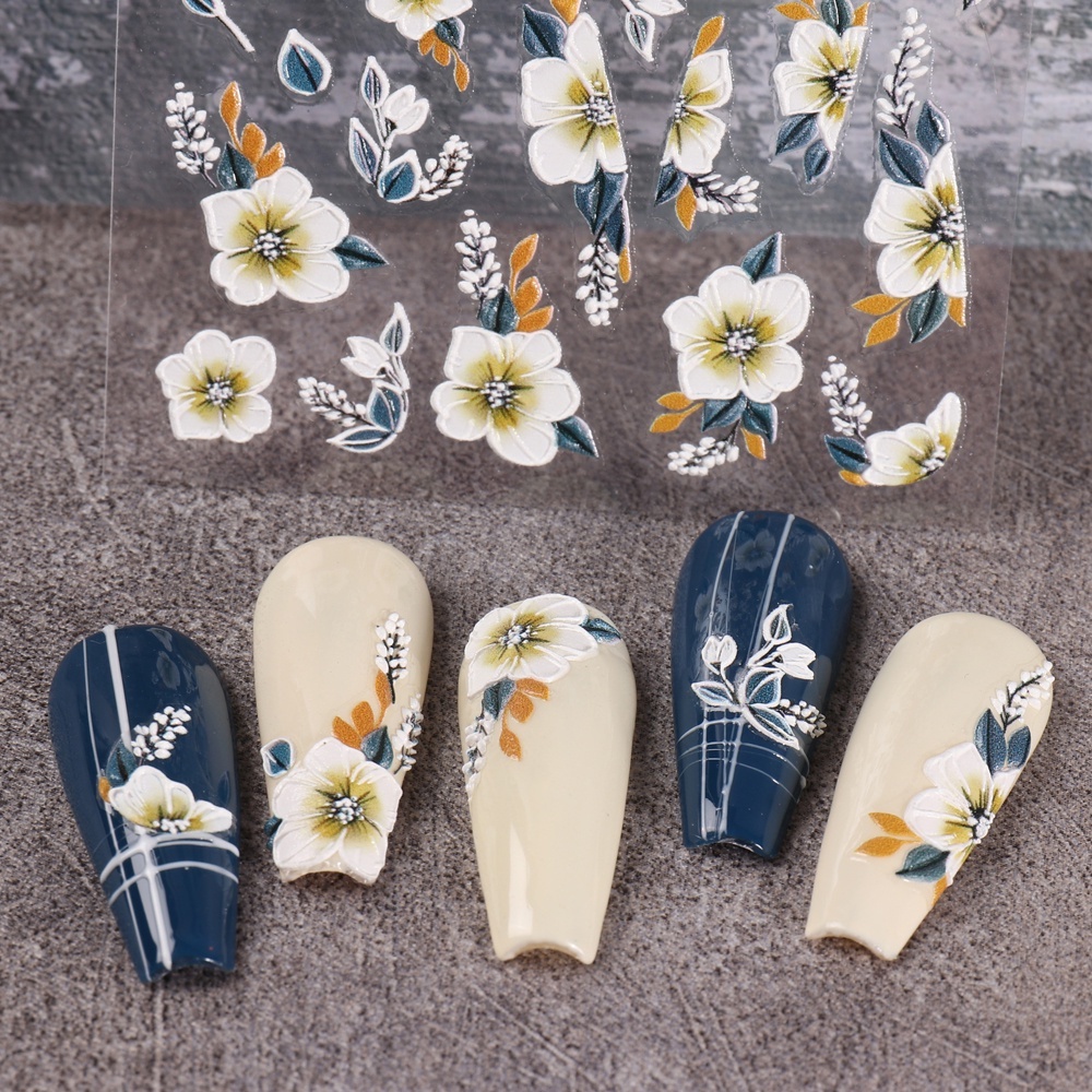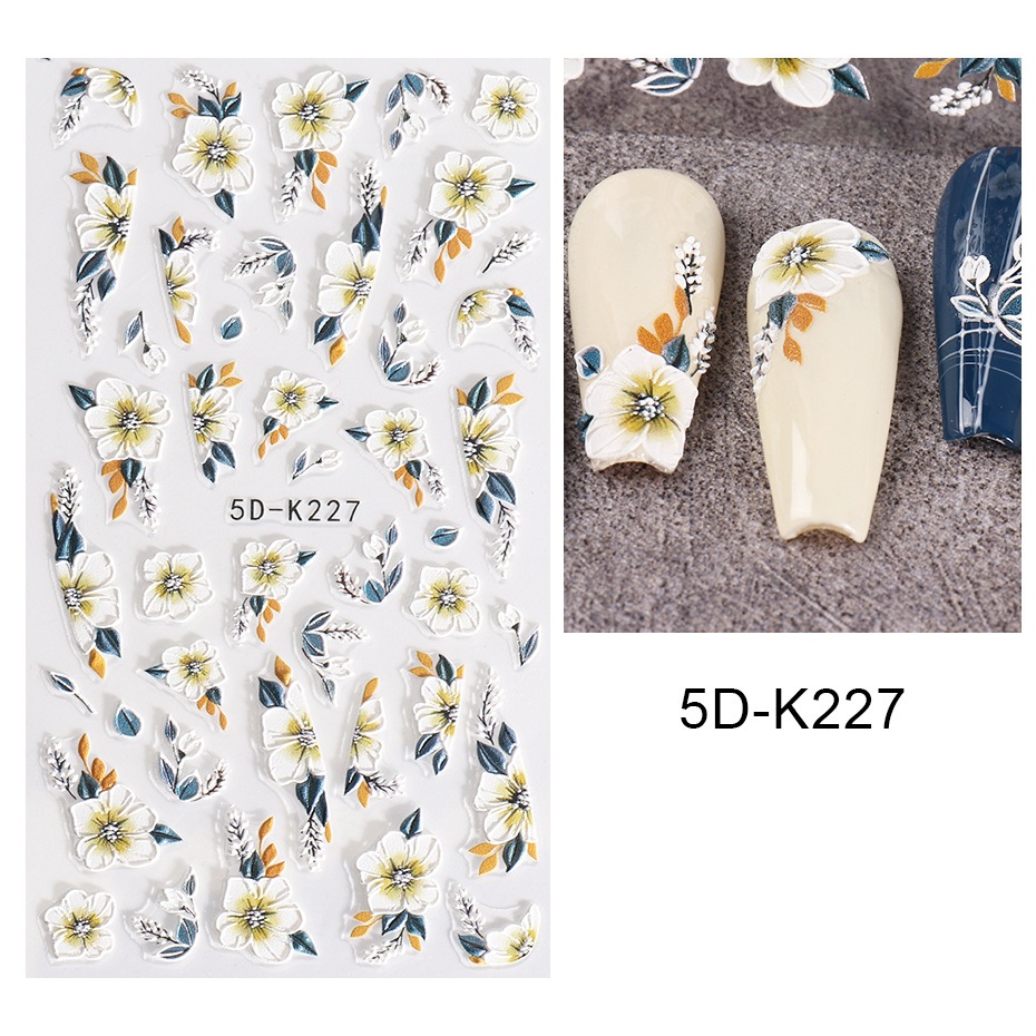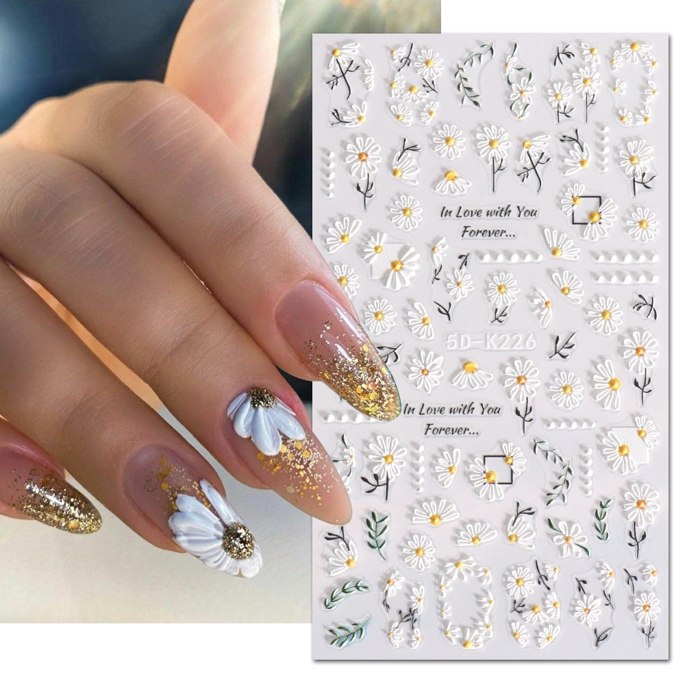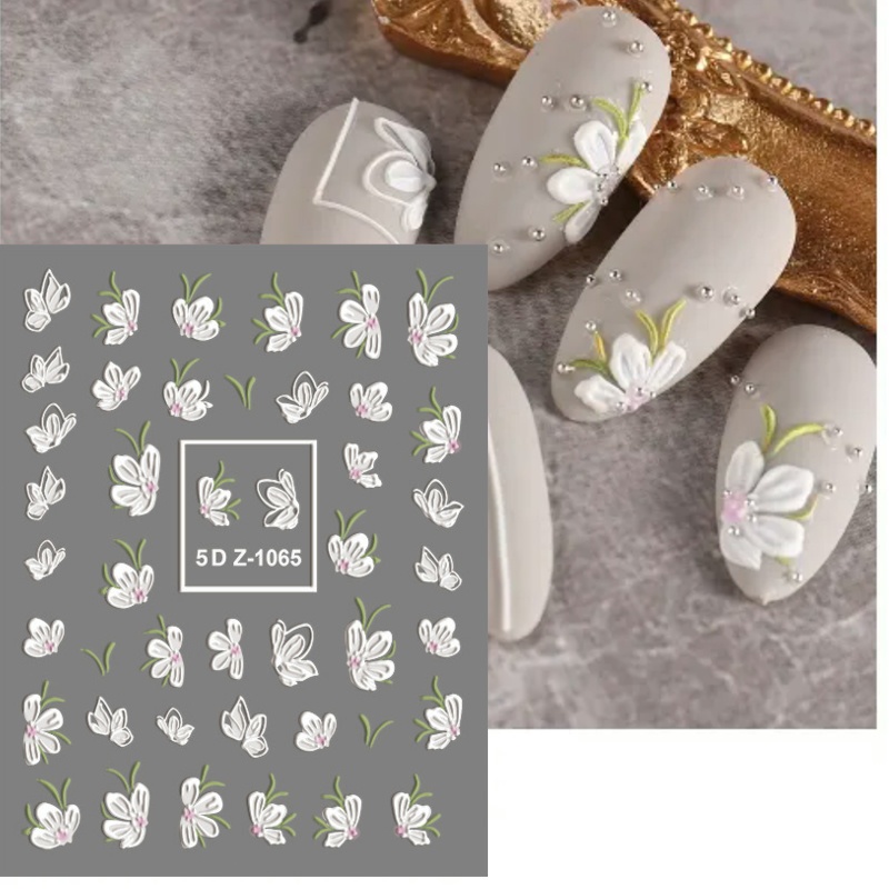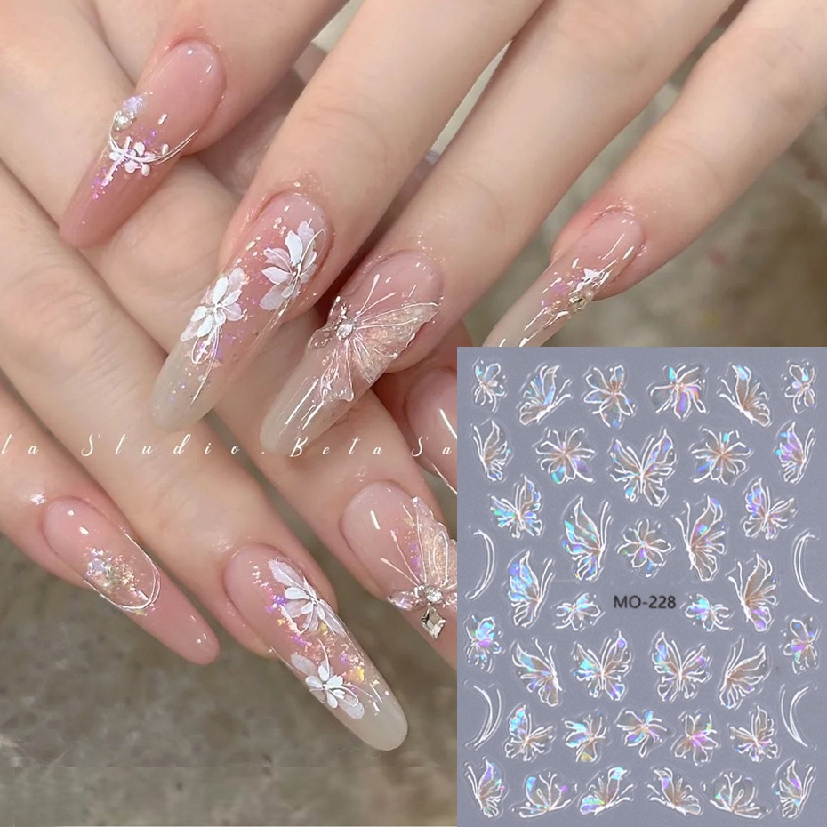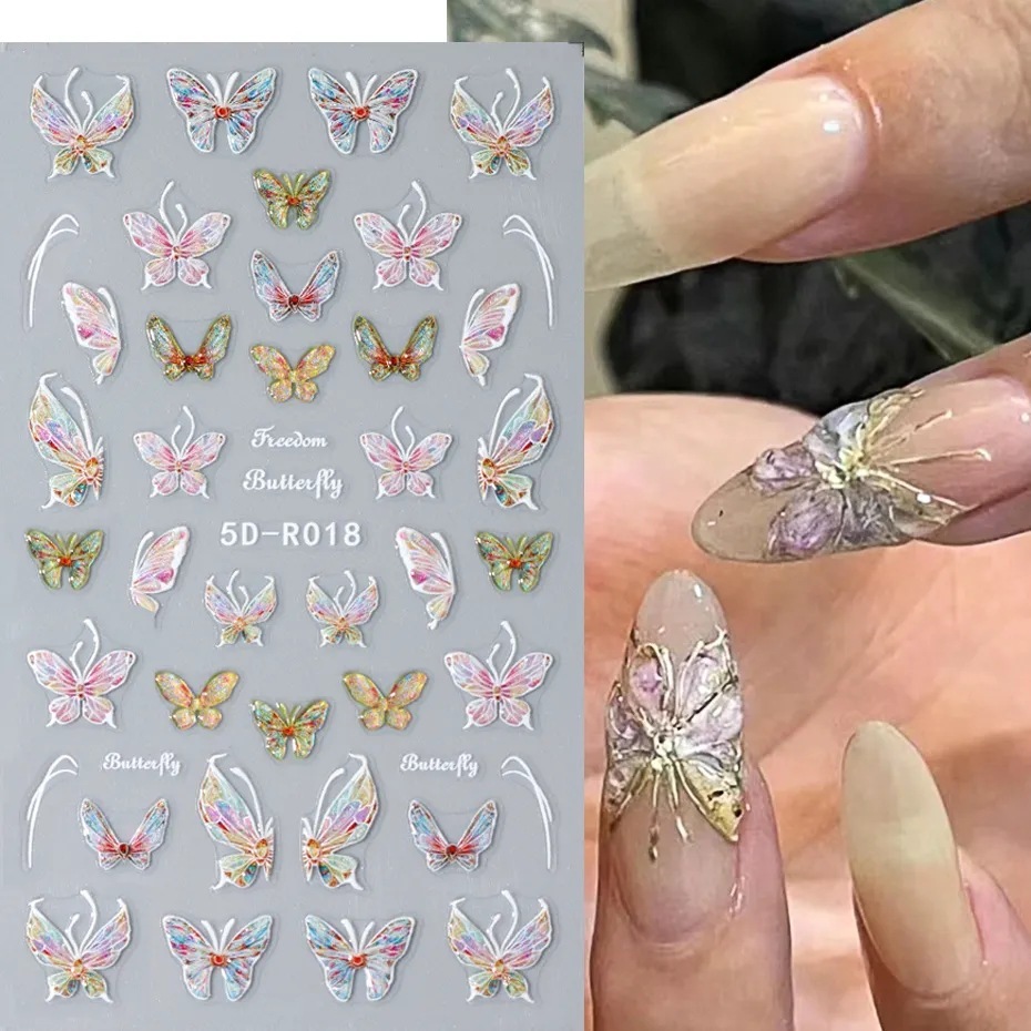 5D Butterfly Nail Stickers Embossed Acrylic Nails Art Design Manicure Nail Spring Flower Peony Daisy
