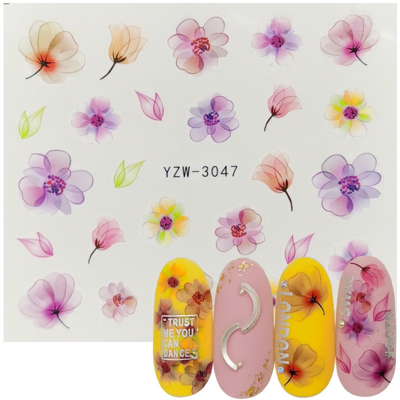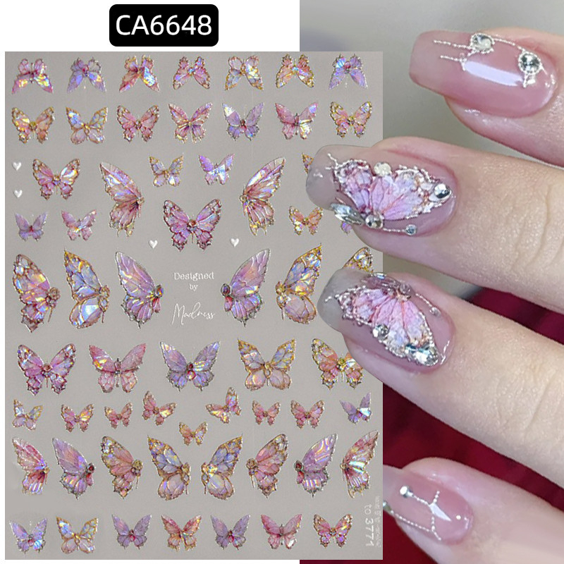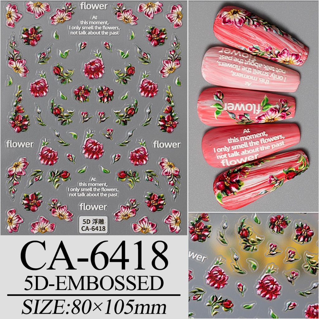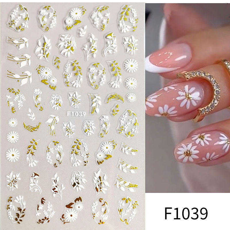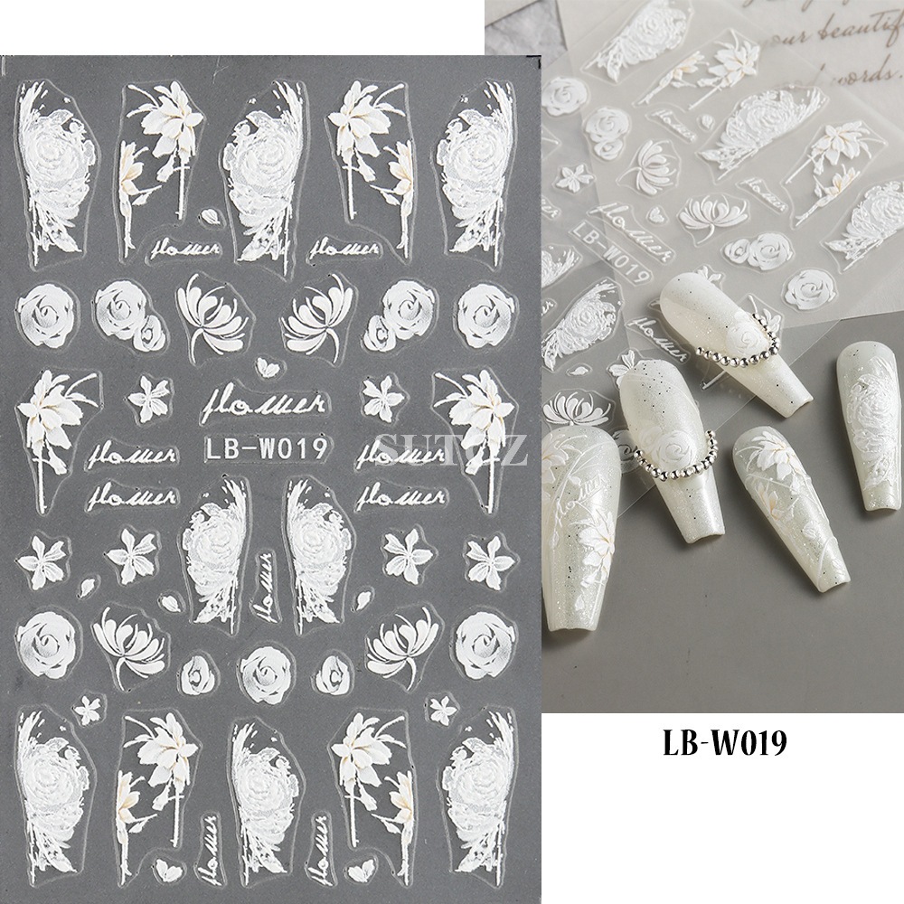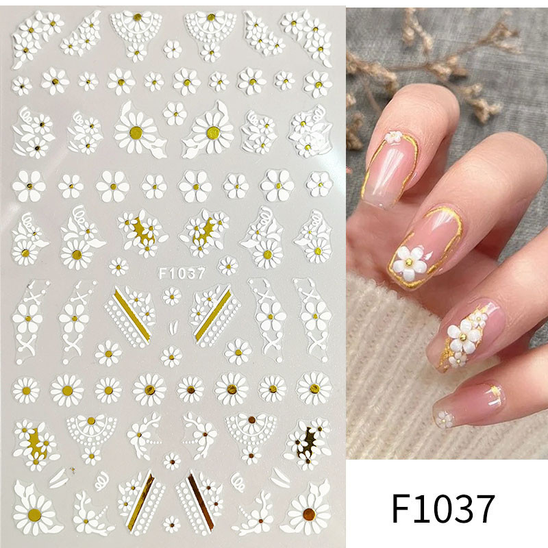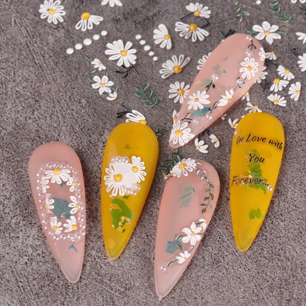 5D Butterfly Nail Stickers Embossed Acrylic Nails Art Design Manicure Nail Spring Flower Peony Daisy