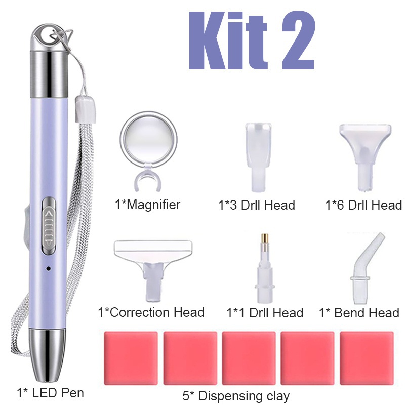 5D Diamond Painting LED Light Pen,2 Light Modes Point Drill Tool Pen Kit for DIY Diamond Art Crystal Accessories
