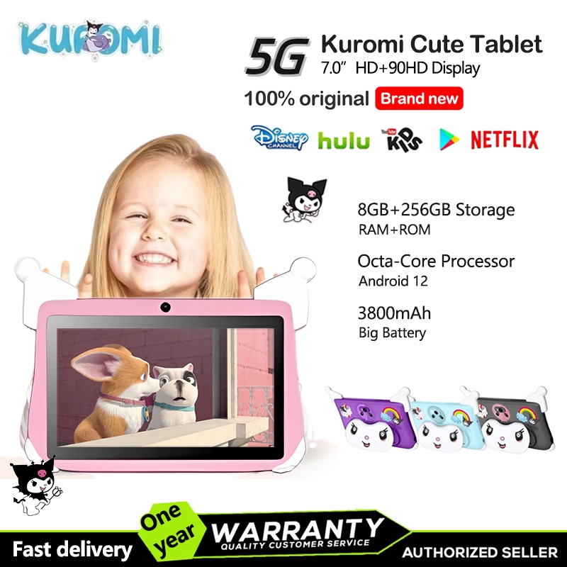 5G Cute Kuromi Tablet For Kids Learning Entertainment 8GB+256GB Kids Tablet Google Playstore YouTube