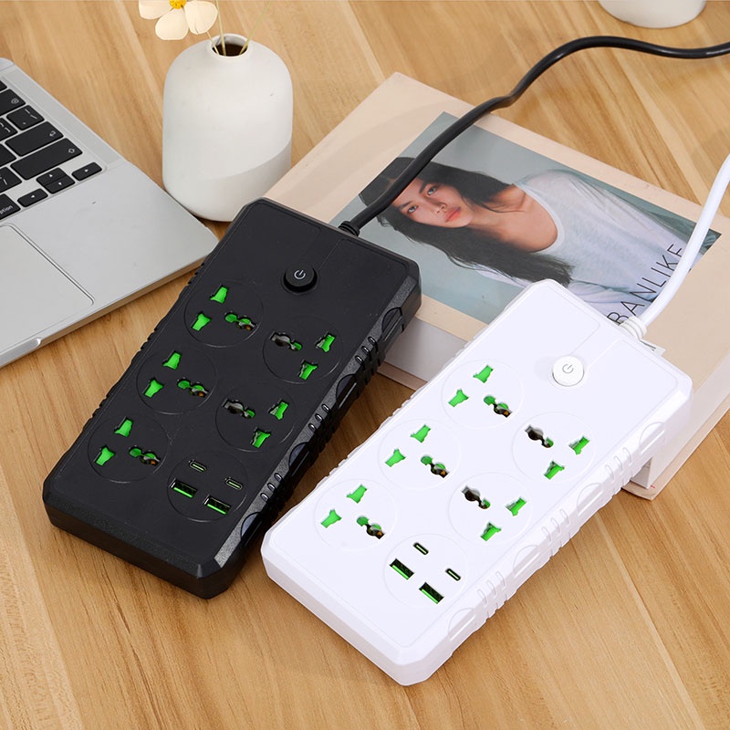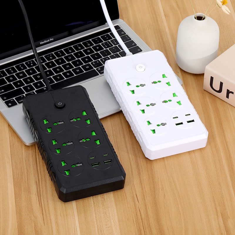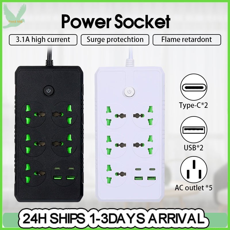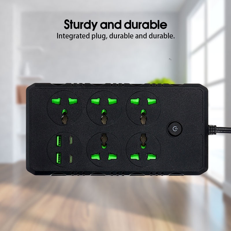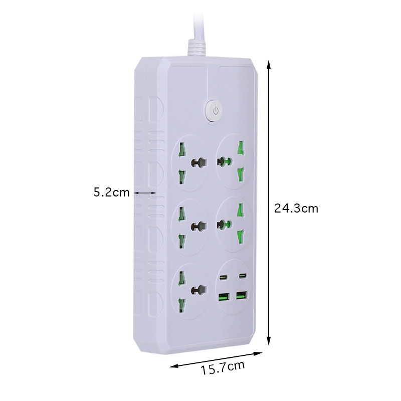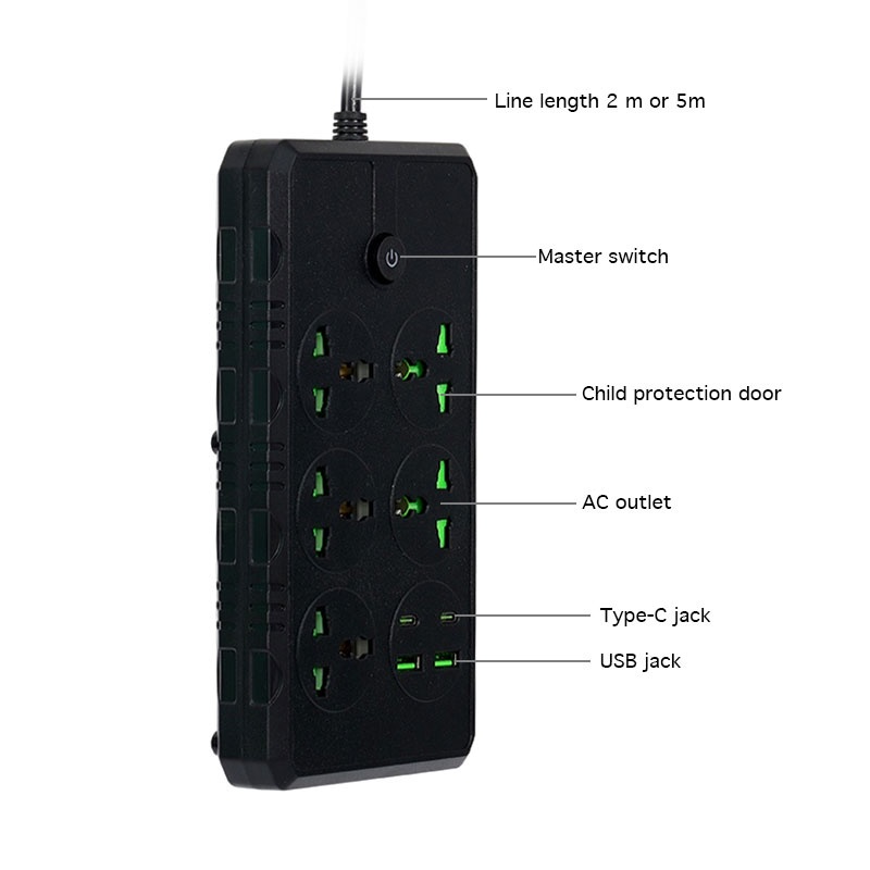 5M Power Socket Extension Power Strip Extension Cord Plug 5 Jacks+2 USB+2 Type-C With Switch US Plug